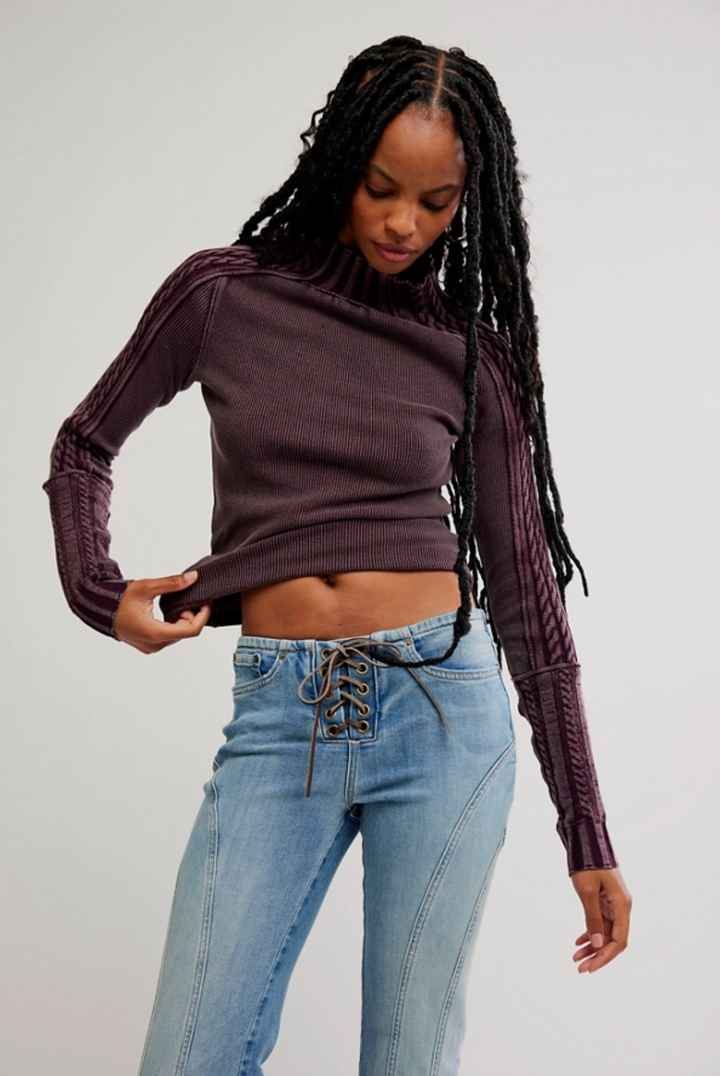 The ultimate cozy option, this sweater from We The Free features all of our favorite fabrications like cable-knit trims and a comfy waffle base.