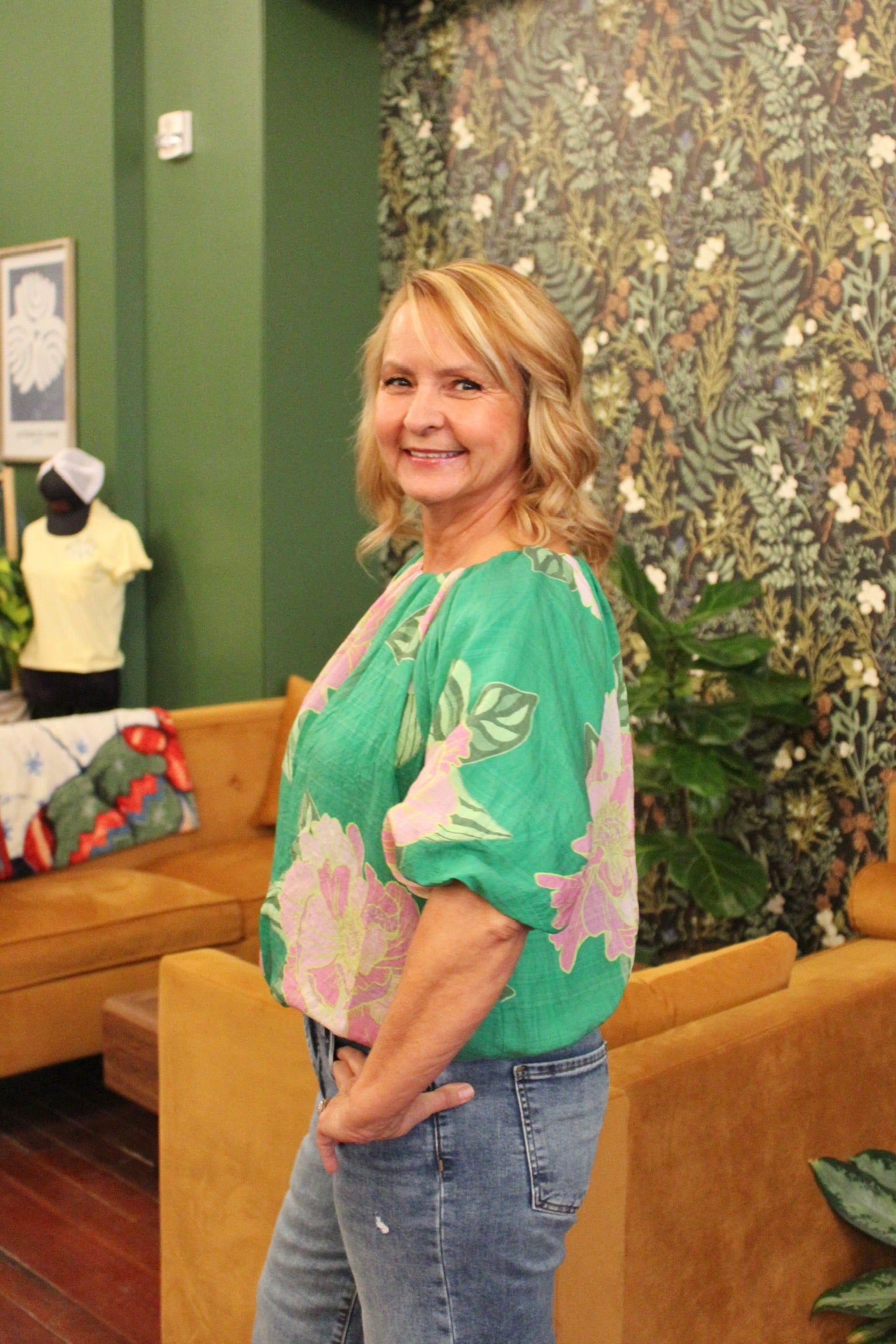 THML Floral Print Bubble Top - Green