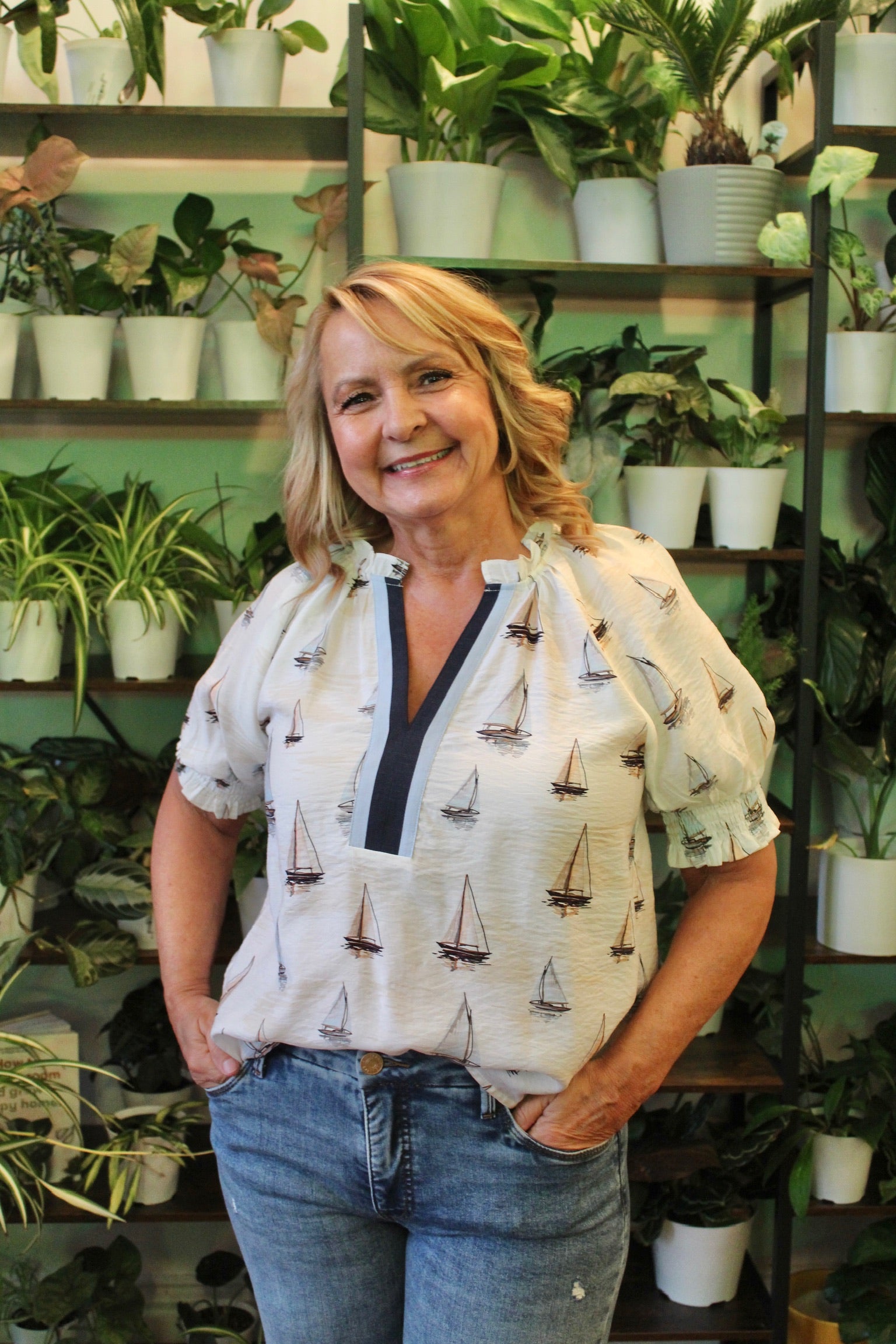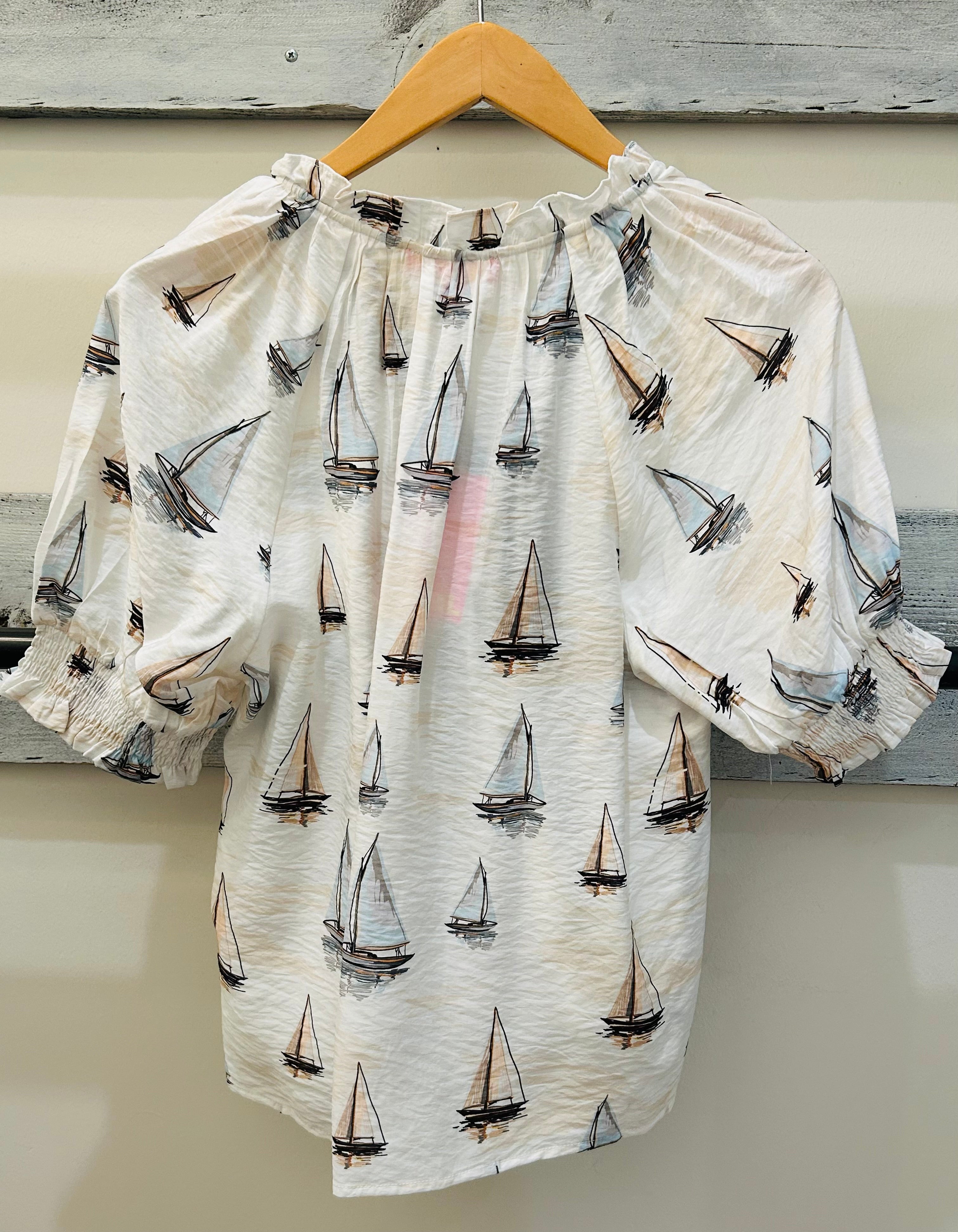 THML Puff Sleeve Sailboat Top - Cream