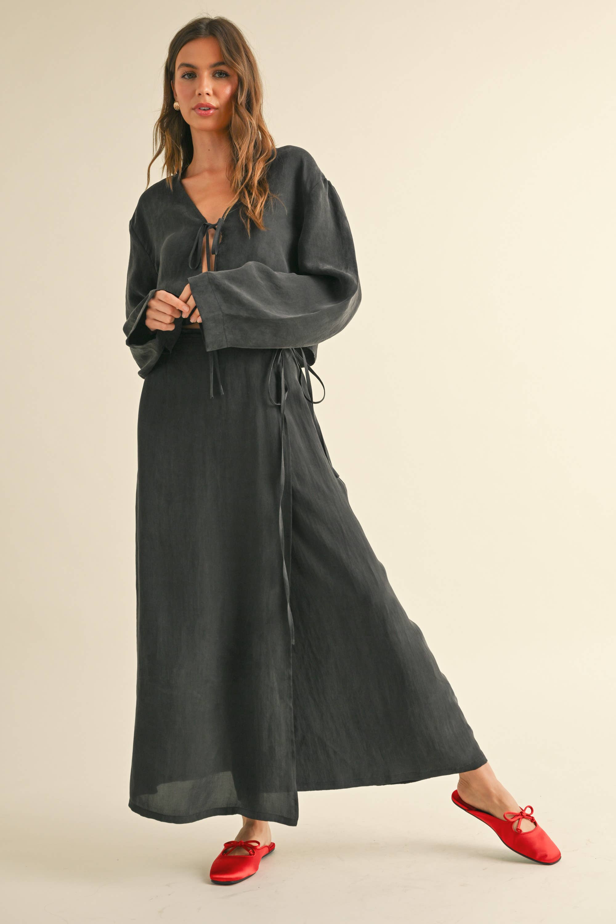 Miou Muse Tencel Fabric Long Wrap Skirt - Black