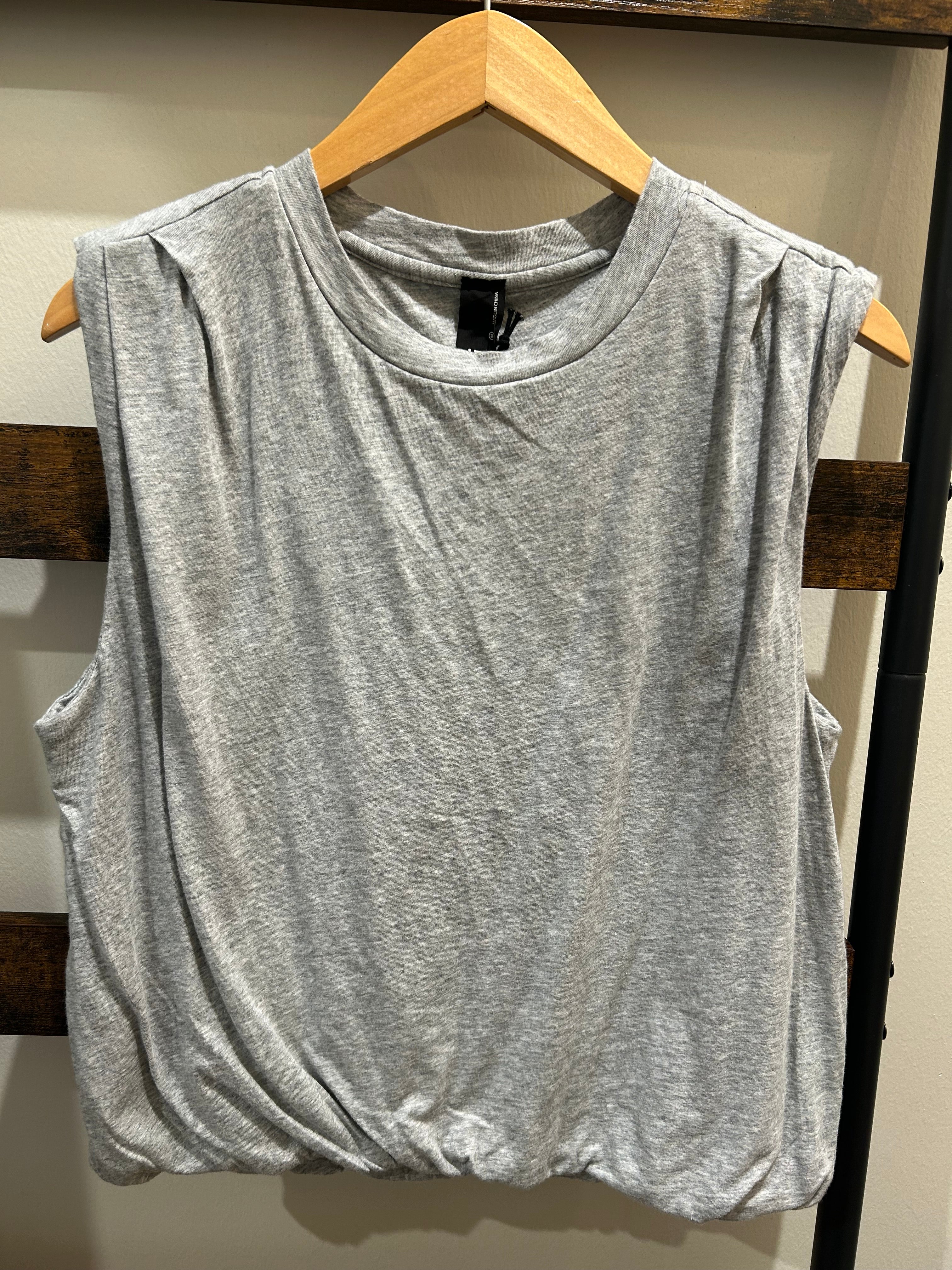 Crewneck Bubble Hem Tee - Heather Grey