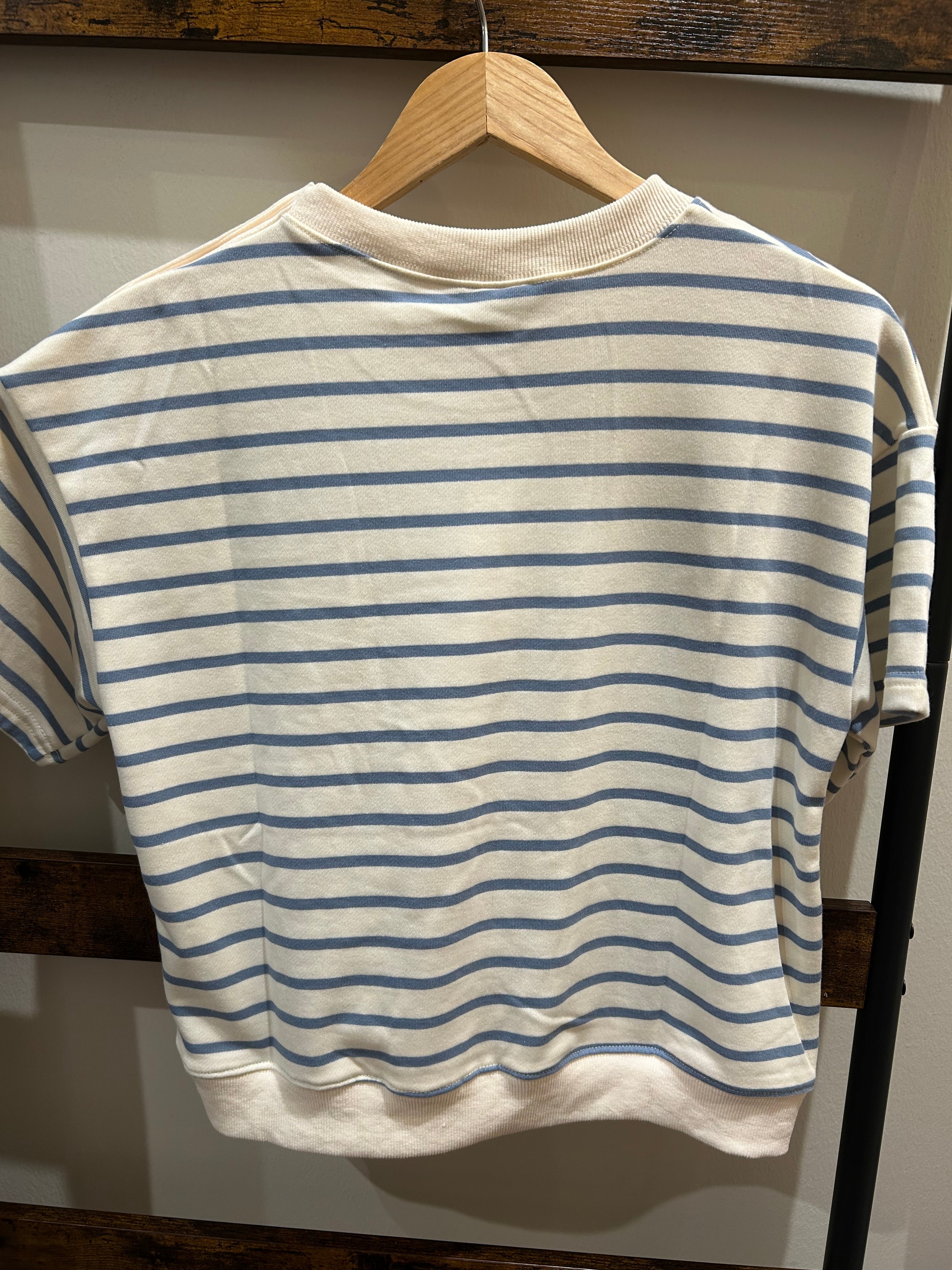 Striped SS Knit Top w/ Button Detail