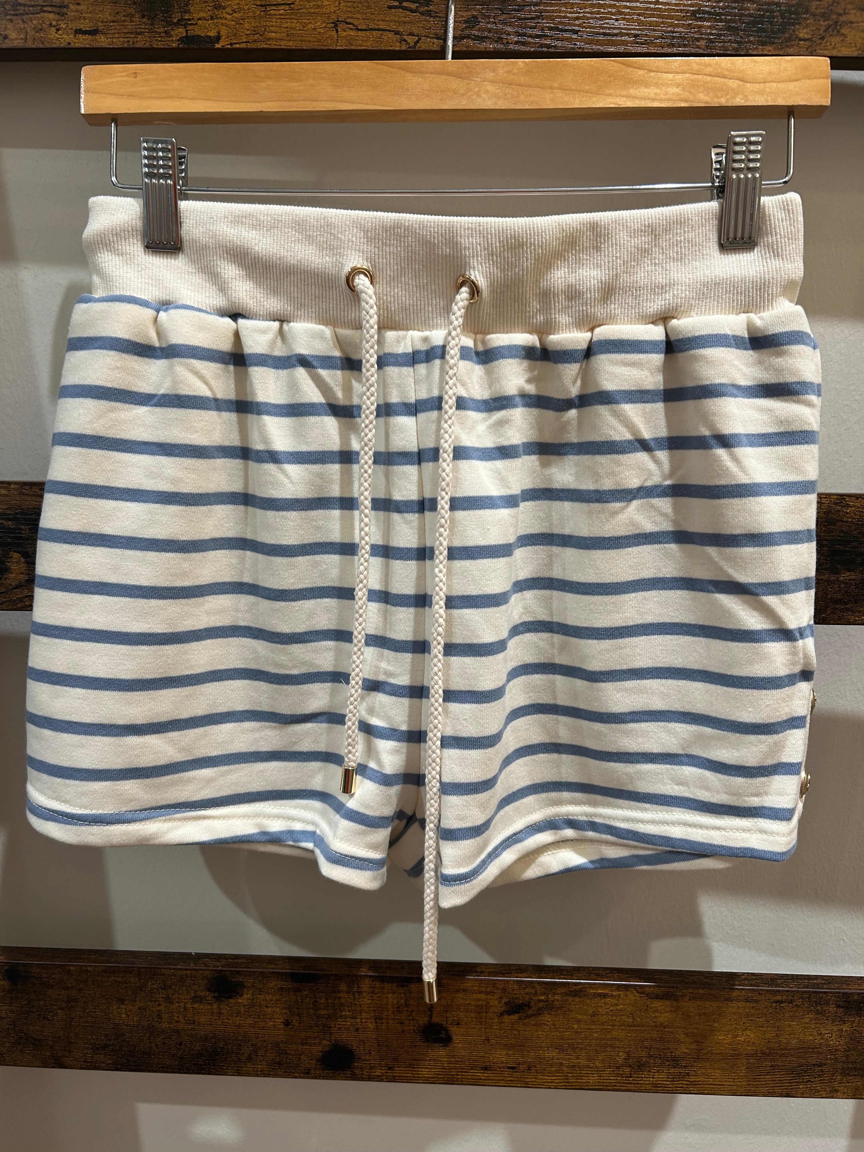 Striped Knit Shorts w/ Button Detail