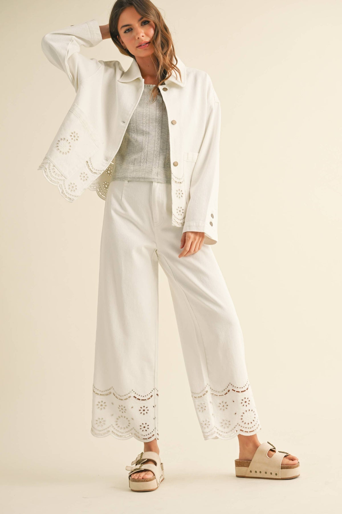 Miou Muse Embroidery Bottom Pants - White
