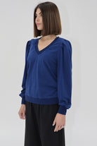 Timeless Sammi v-neck sweatshirt, featuring pleated long sleeve perfectly crafted for unparalleled style. Imbue a chic, elevated touch, ideal for both casual outings and more polished affairs. Its versatile design effortlessly pairs with tailored trousers or your favorite denim for a contemporary yet classic look. Feeling fabulous comes as naturally as looking stunning.