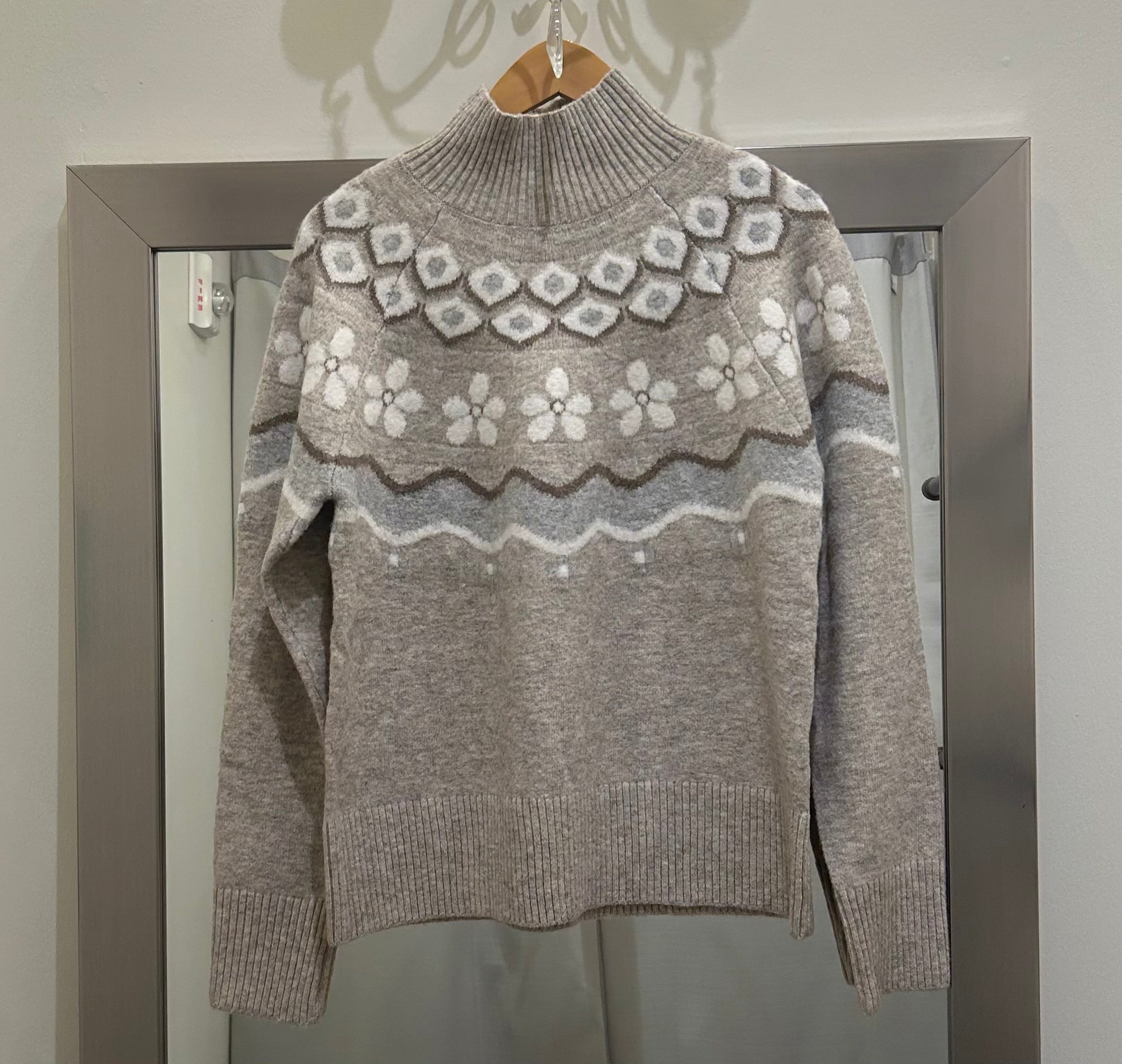 Cozy meets cool in the Hem& Thread Nordic Mock Neck Sweater. Wrapped in soft taupe and grey tones, it’s your go-to for effortless style and warmth. Perfect for layering or rocking solo, this sweater keeps the chill out while keeping your vibe light and fun. Who knew comfort could look this good?