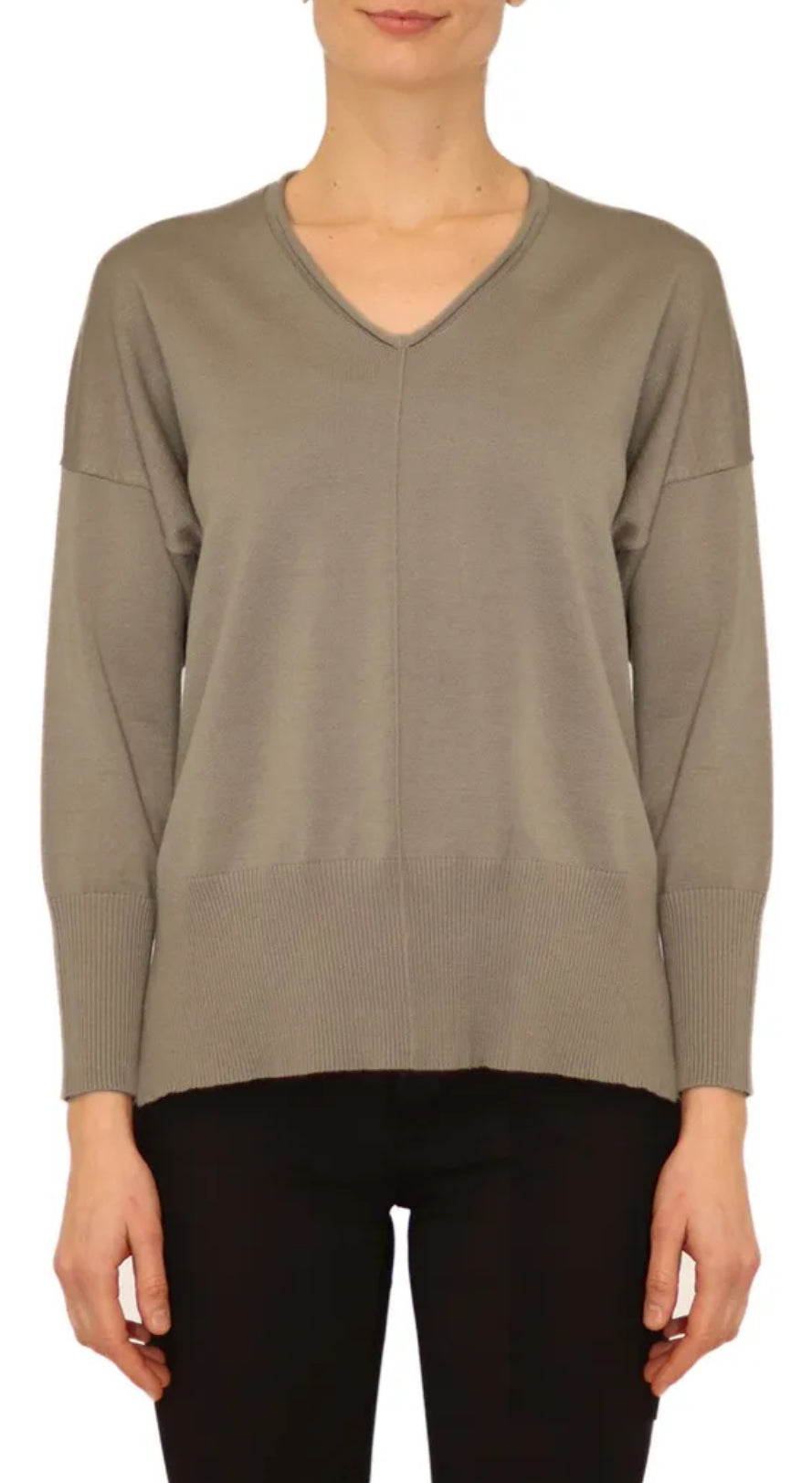 Metric Knits Oversized Pullover w/Faux Seams-Fog
