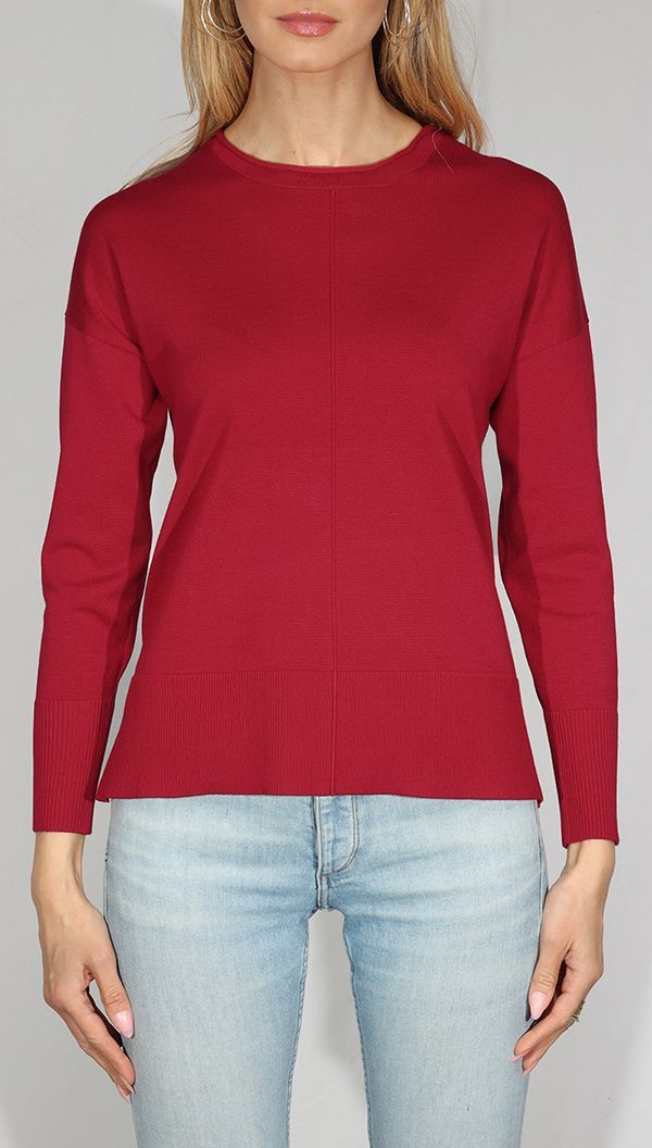 Metric Knits Oversized Pullover w/ Roll Edge Neck - Tulip Red