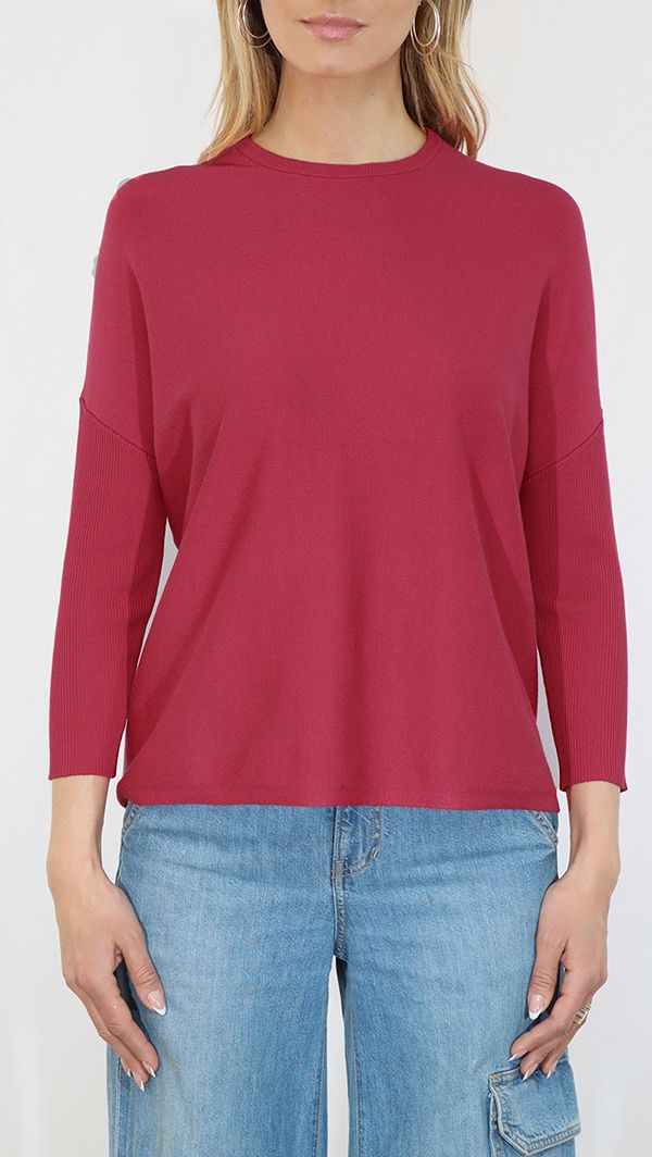 Metric Knits Oversized Rib Sleeve Neck Pullover - Barberry Red