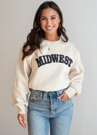 - Dark gray "Midwest" textured text on the front