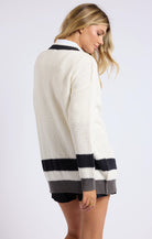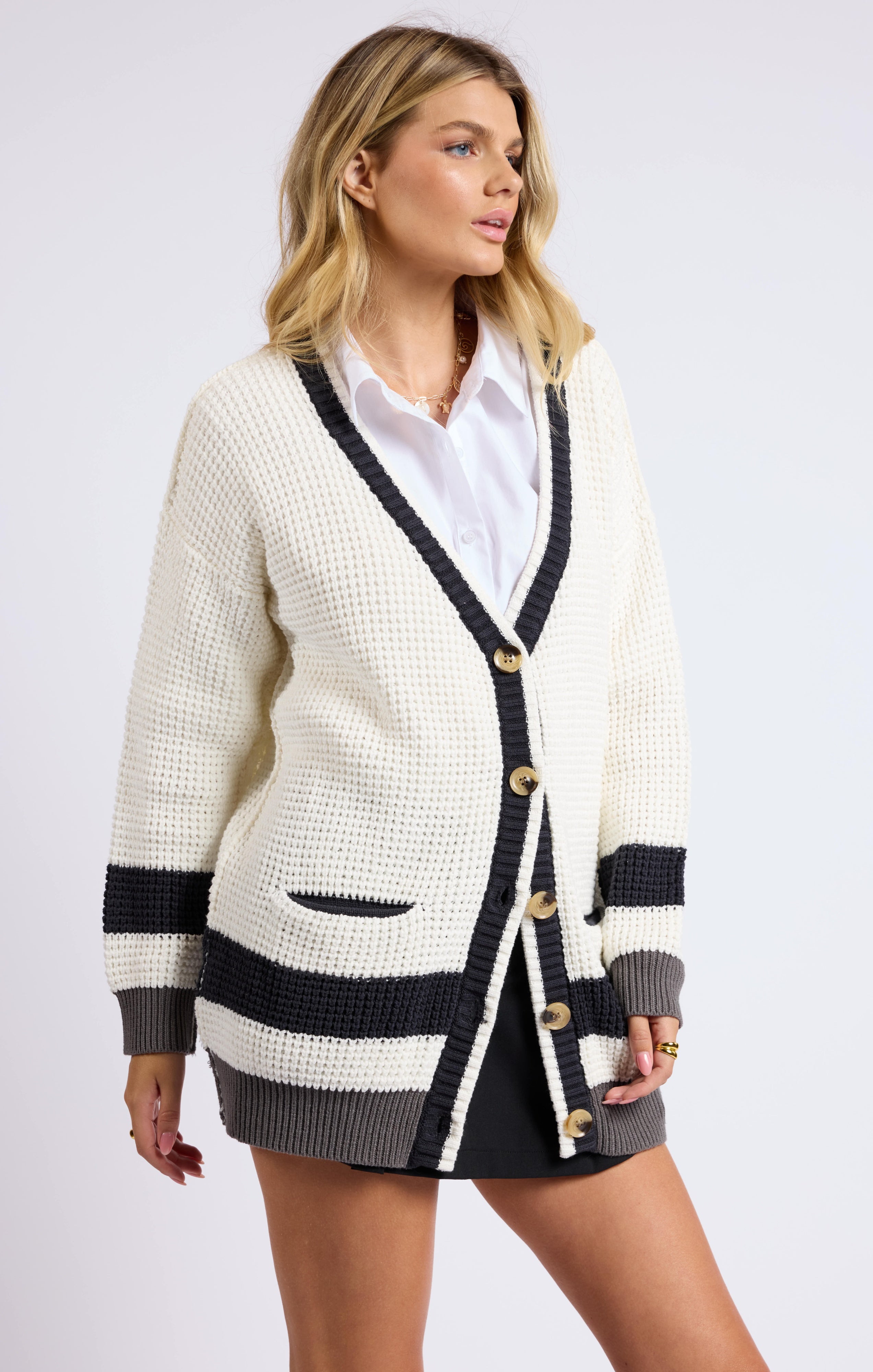 Introducing the Sage the Label Places Colorblock Cardigan! This button down cardigan features convenient front pockets and a soft, striped waffle knit. Perfect for staying cozy and stylish on chilly days.