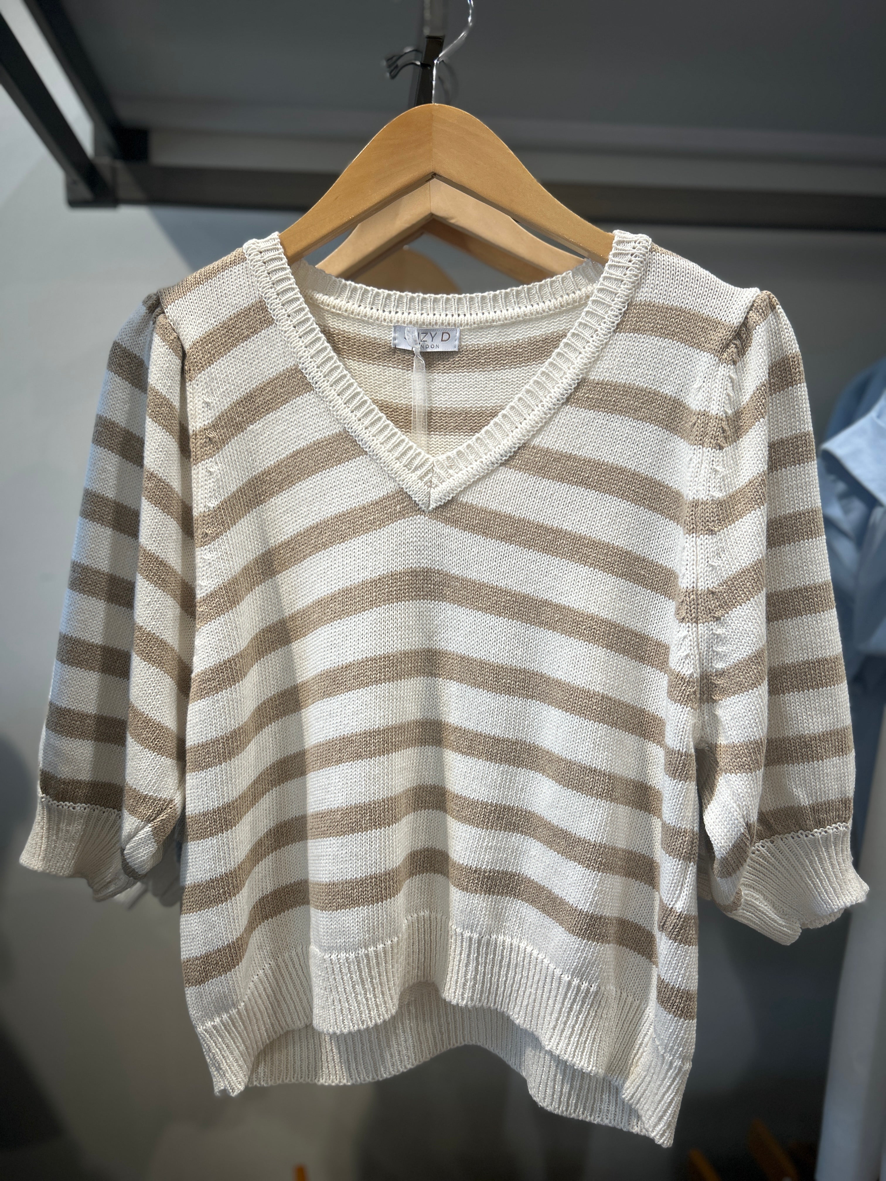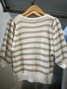 Suzy D Felora Stripe Bubble Sleeve Knit Sweater - Beige Stripe