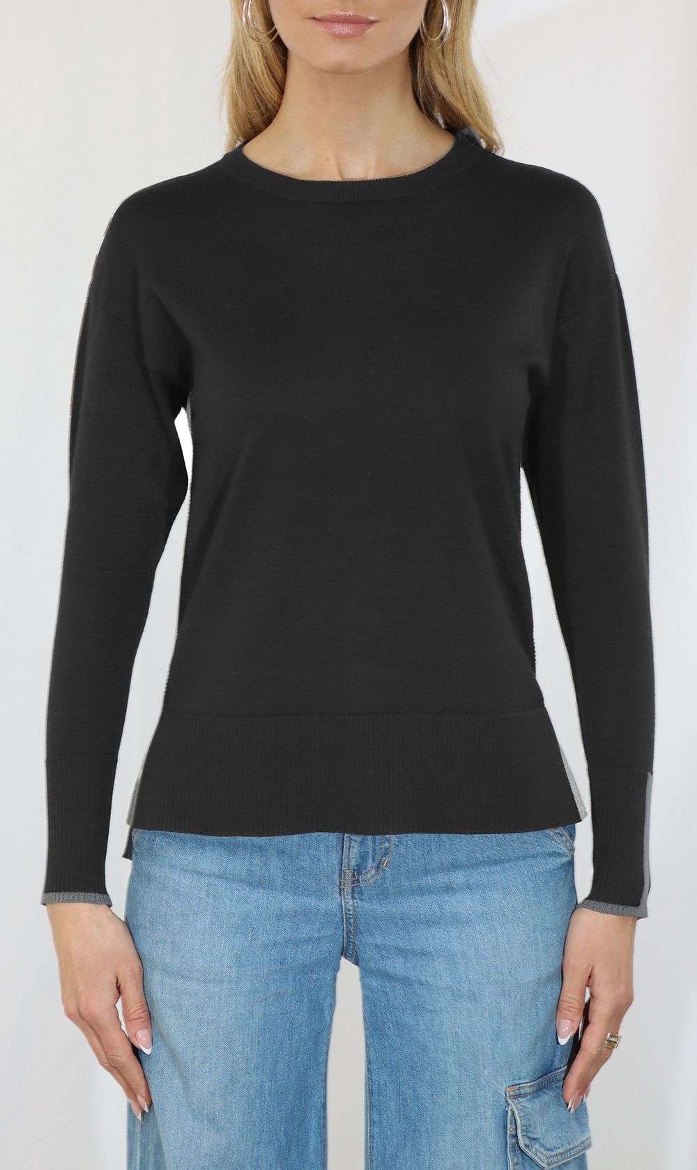 Metric Knits Crewneck Contrast Sweater - Black/Dark Shadow