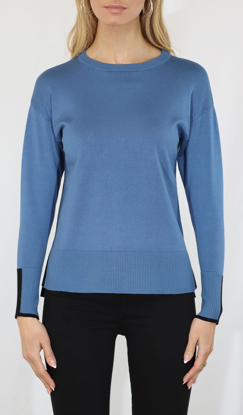 Metric Knits Crewneck Contrast Sweater - Indigo Blue/Black