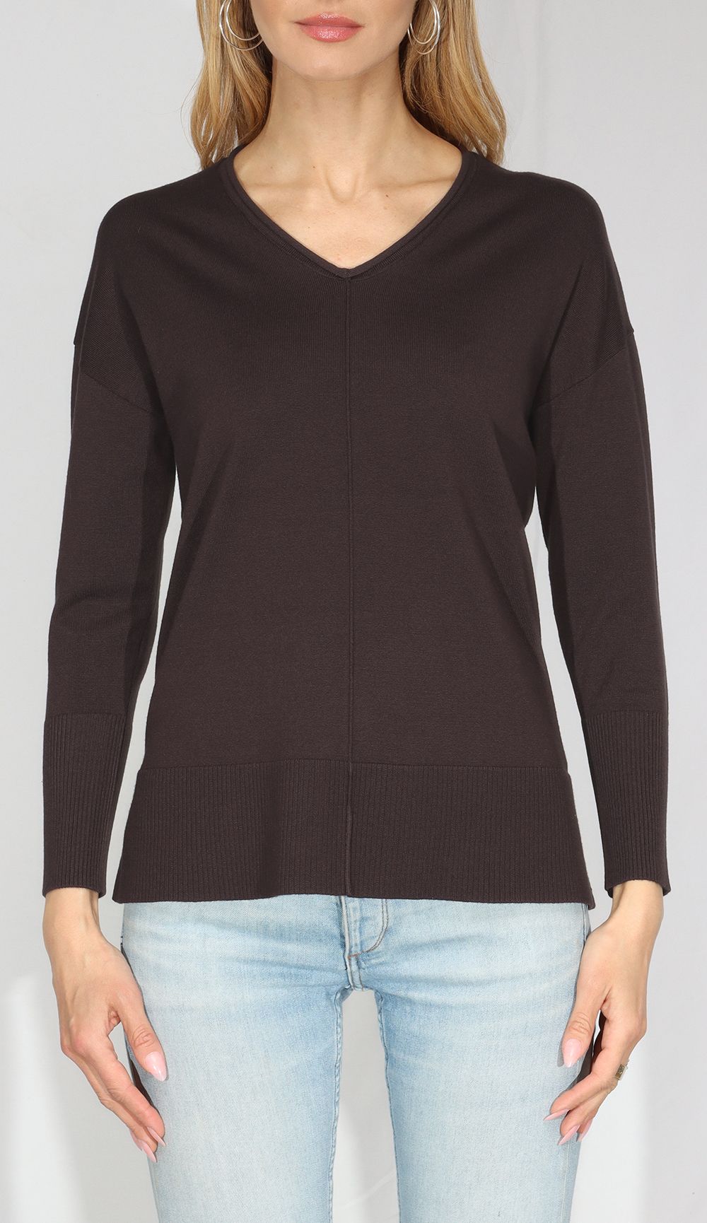 Oversized Pullover w/ Faux Seams - Bitter Chocolate