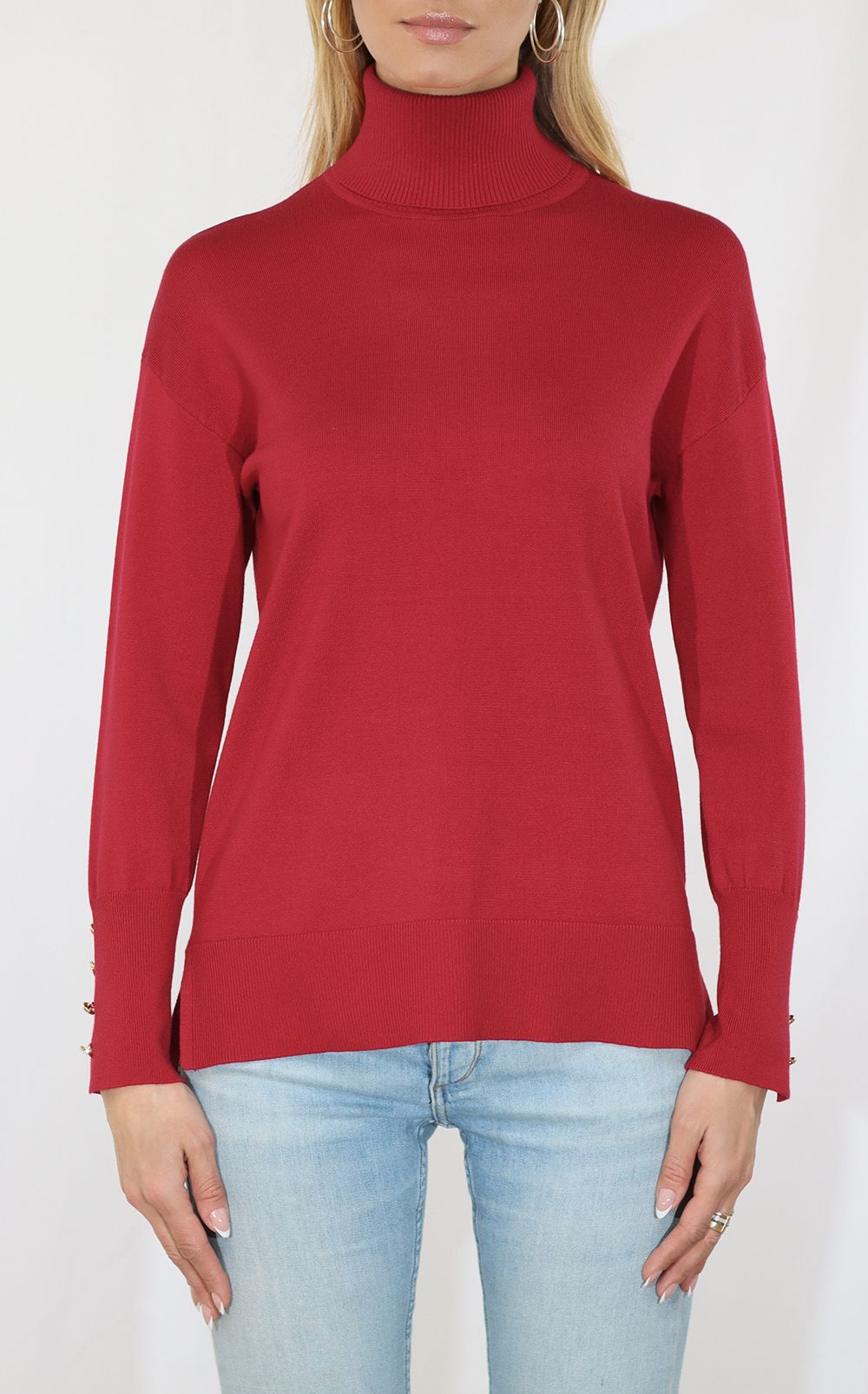 Metric Knits LS High-Low Turtleneck Tunic - Tulip Red