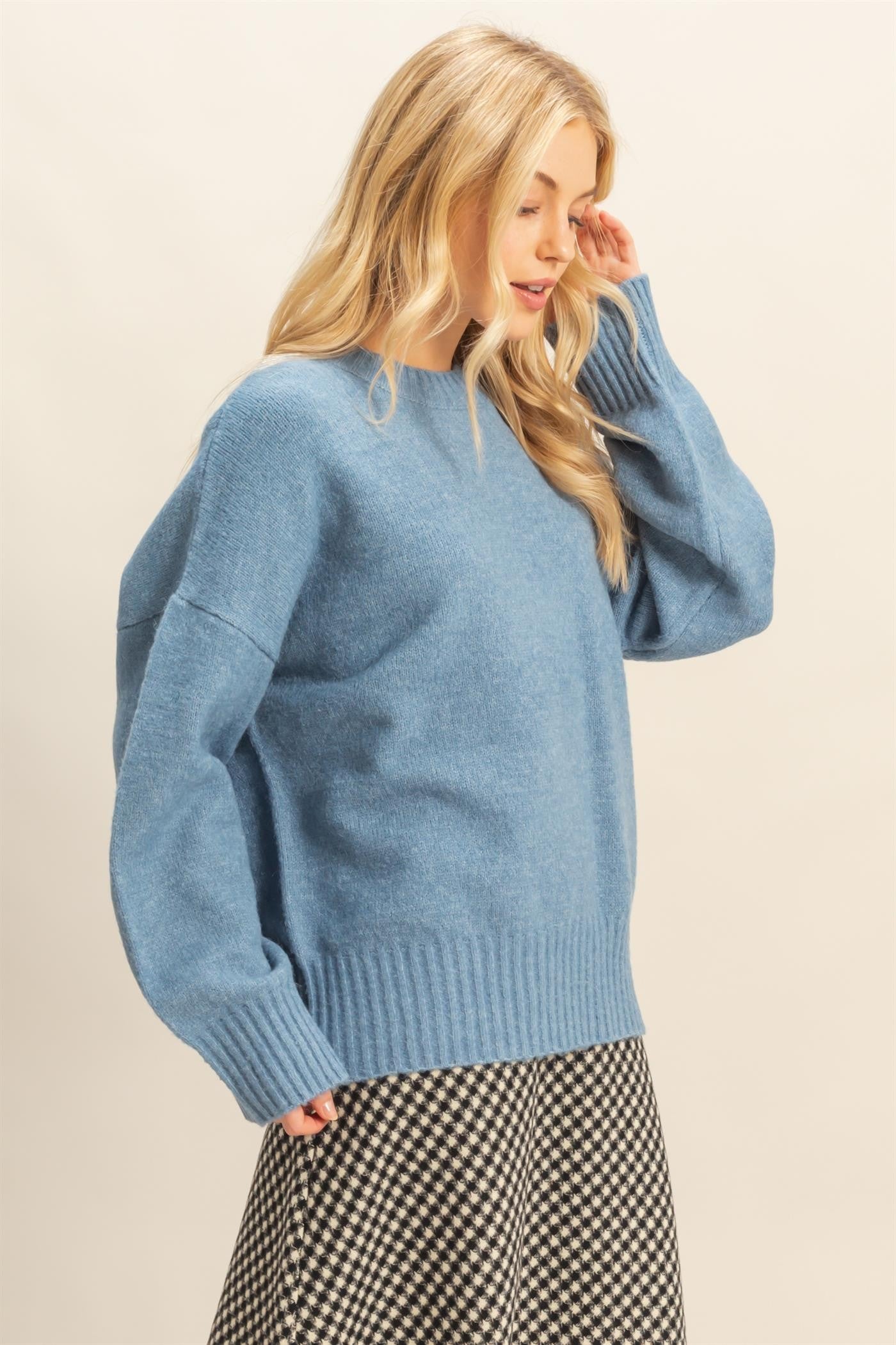 Metric Knits Oversized Pullover w/ Roll Edge Neck - Colony Blue