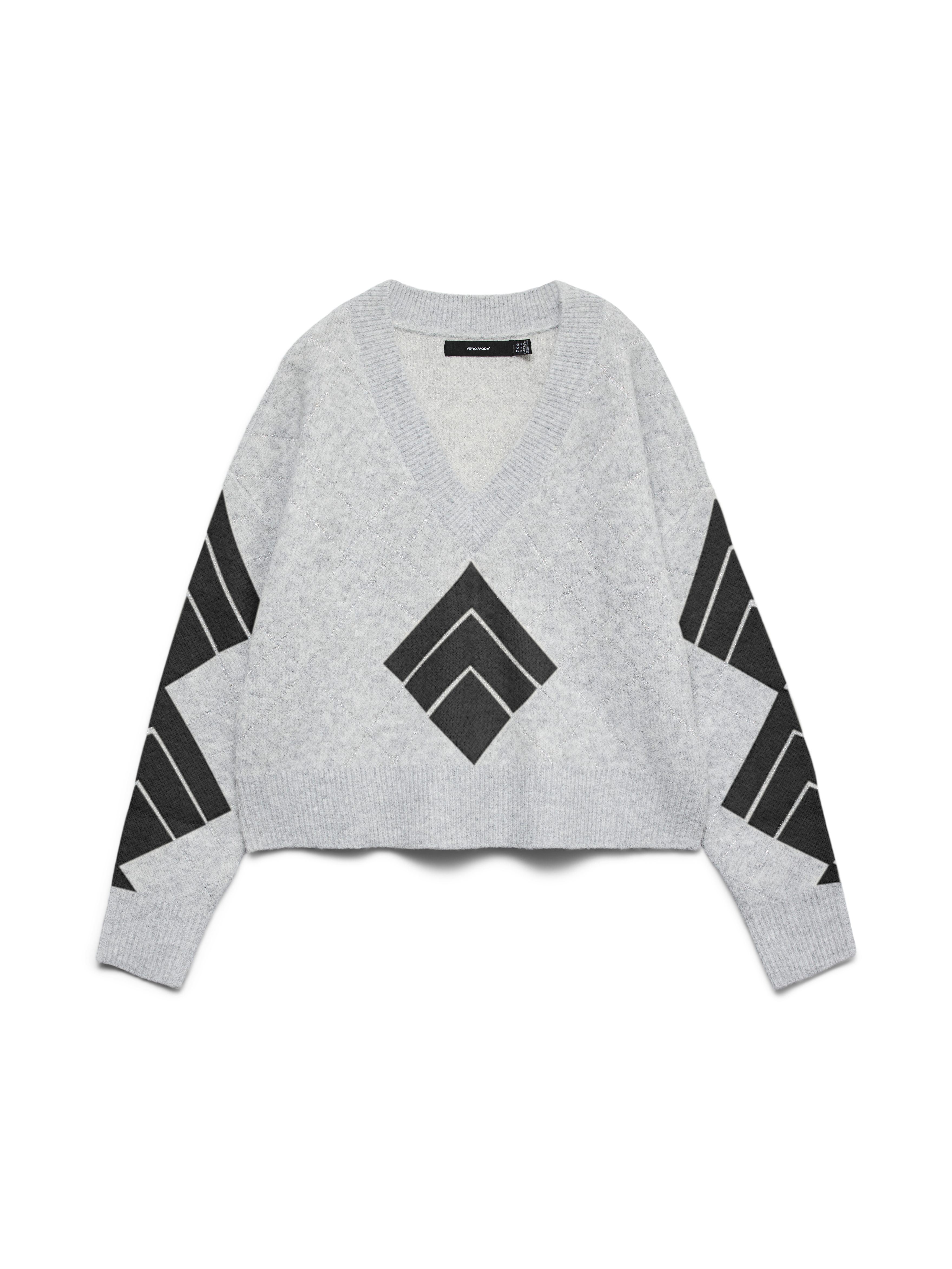 Vero Moda Dae LS V-Neck Pullover - Light Grey Melange