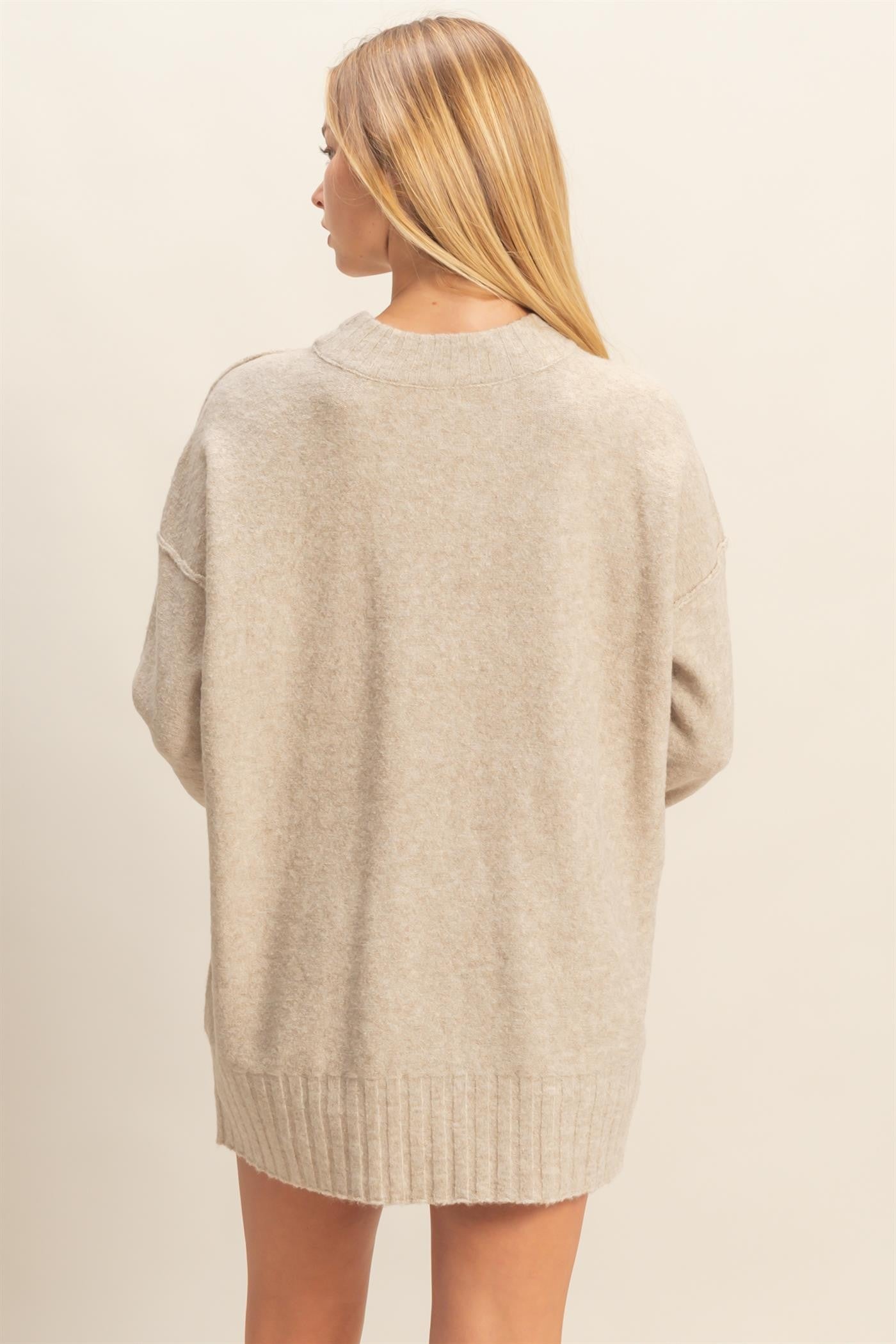 Tribal Drop Shoulder Turtle Neck Sweater - Celestial