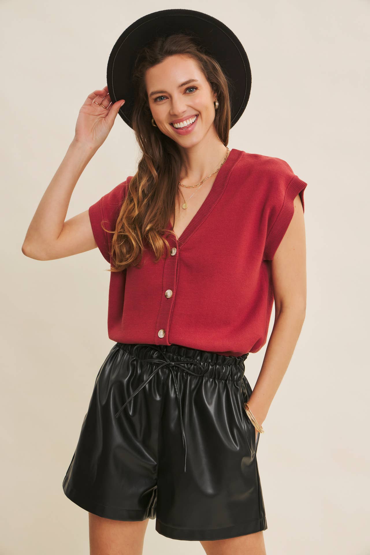 In February Multi-Way Cotton Sweater Vest - Maroon
