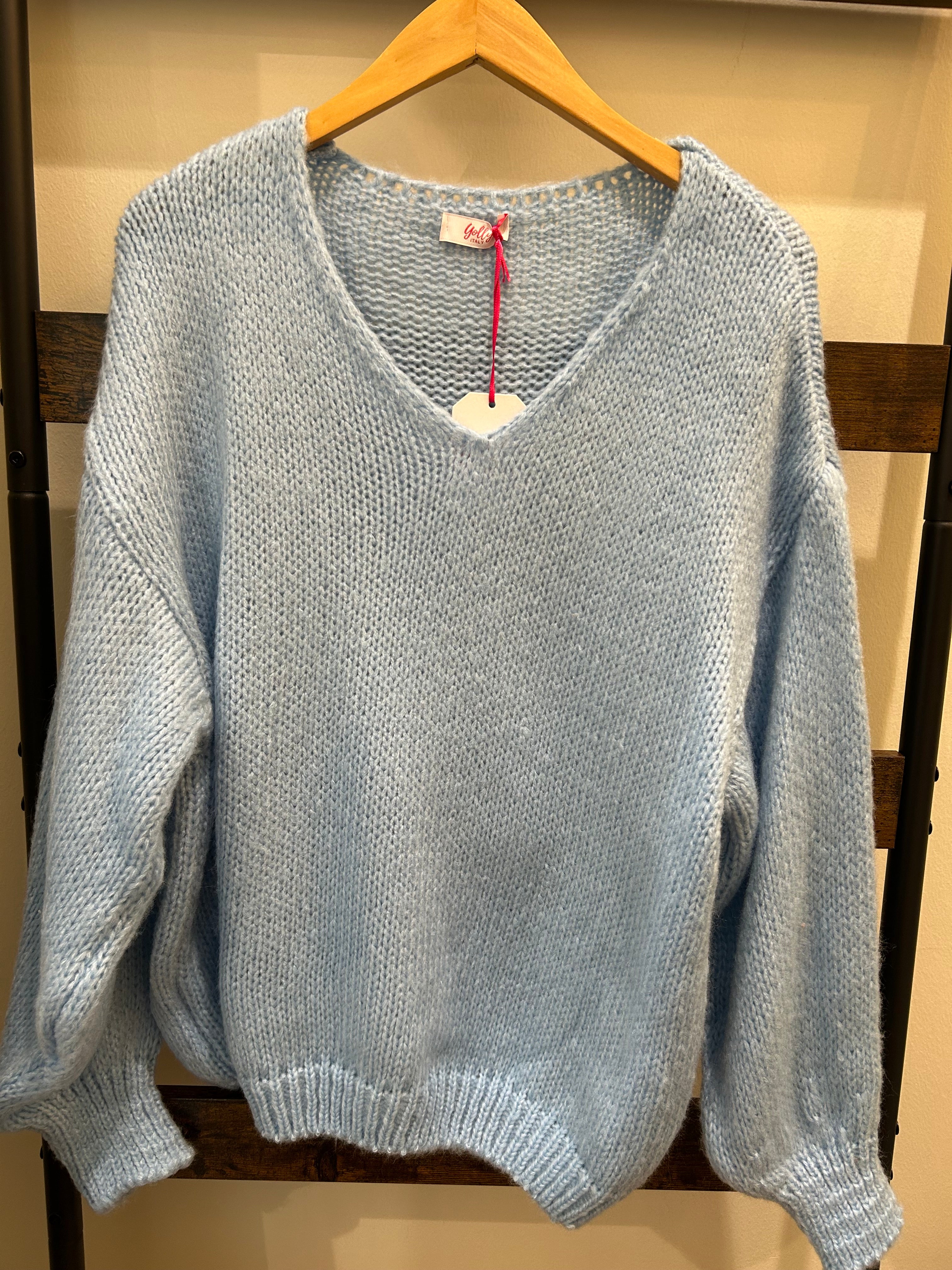 Yolly Loose Knit V-Neck Sweater - Blue