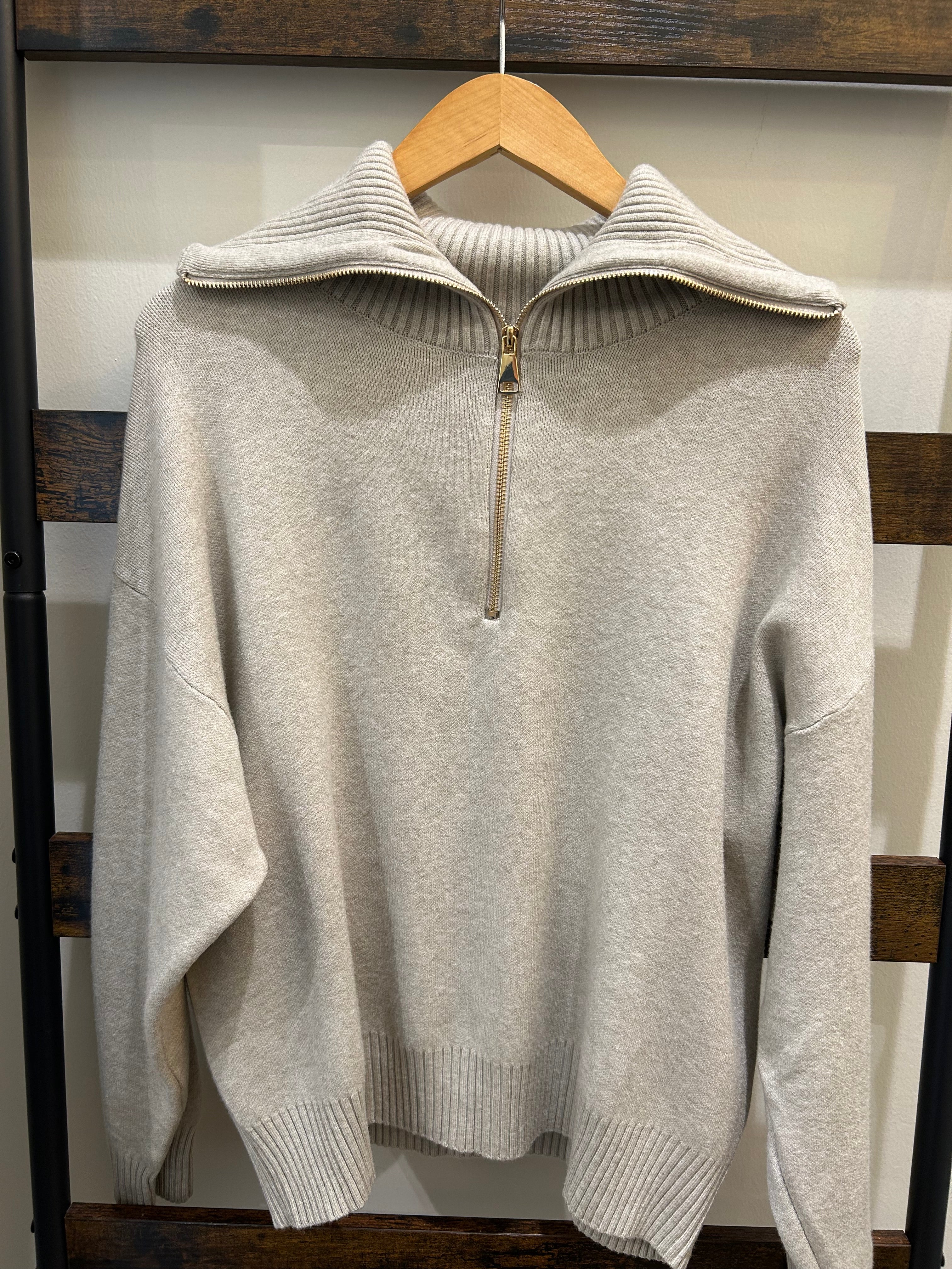 Yolly 3/4 Zip Pullover Sweater - Beige