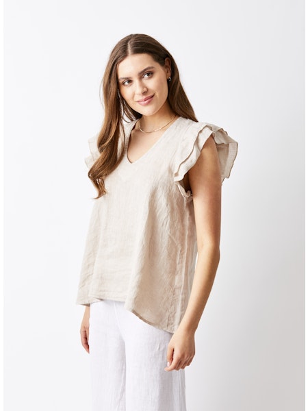 Suzy D Santiago Frill Sleeve V-Neck Tee - Nude