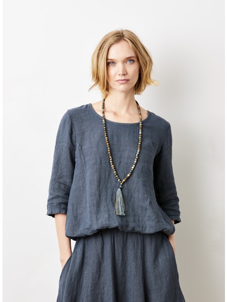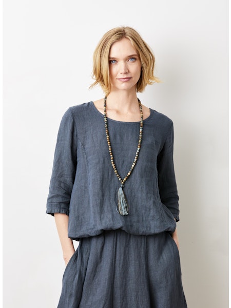 Suzy D Sonita Linen Bubble Hem LS Top - Antracite