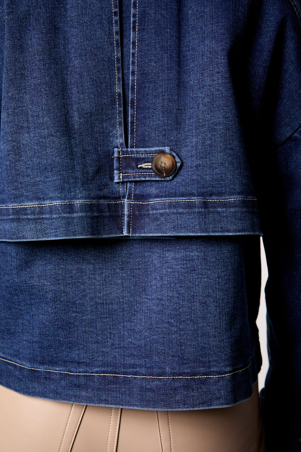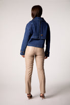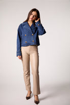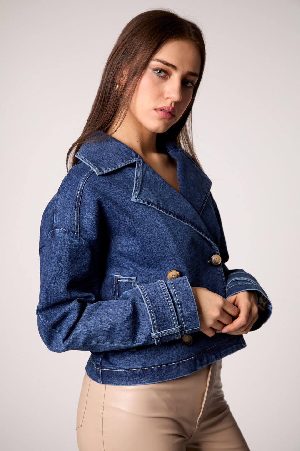 Meet the Lana Cropped Trench, a tailored denim jacket with a modern twist.
