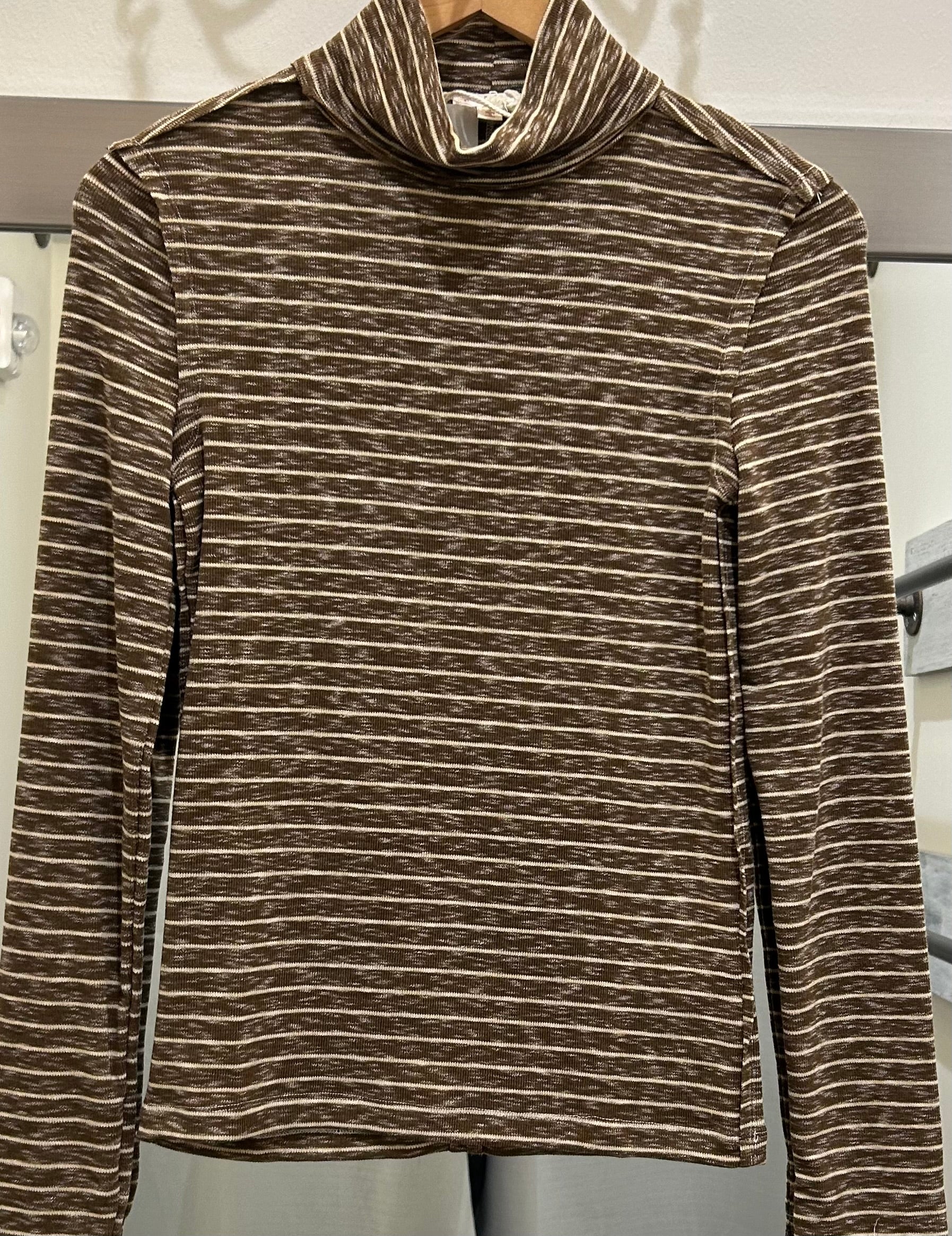 Hem & Thread Stripe Turtle Neck w/ Thumb Holes - Brown