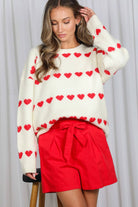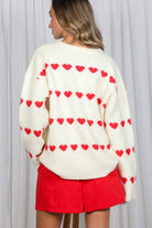 Sweet Heart Embellished Cozy Knitted Sweater - Cream