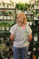THML SS Striped Floral Embroidery Top - Blue
