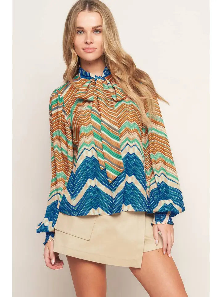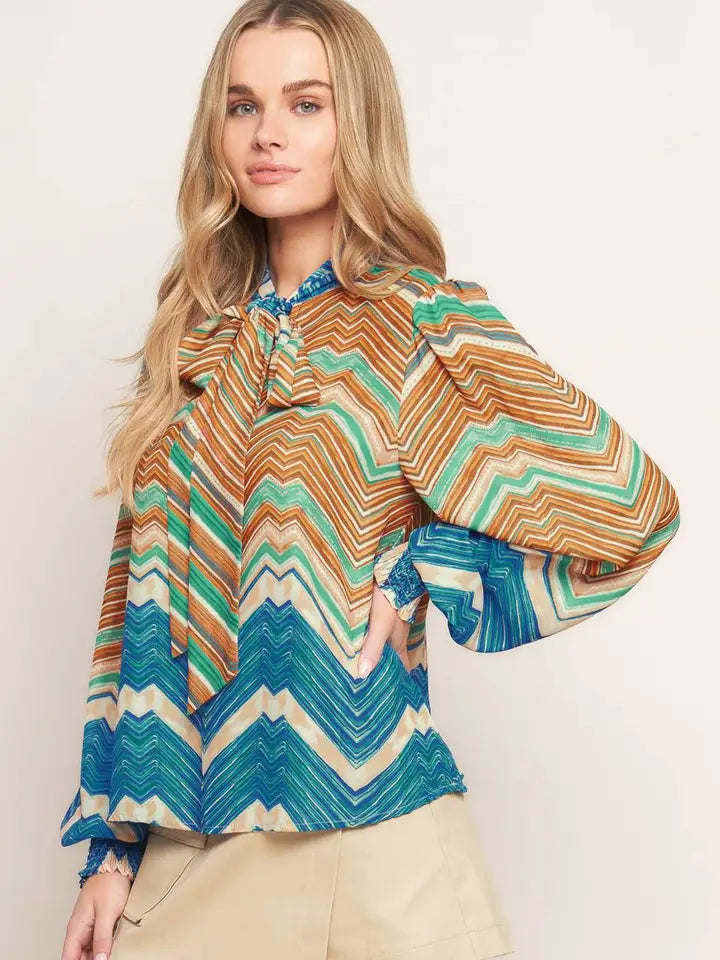 Flying Tomato Printed Chevron Top