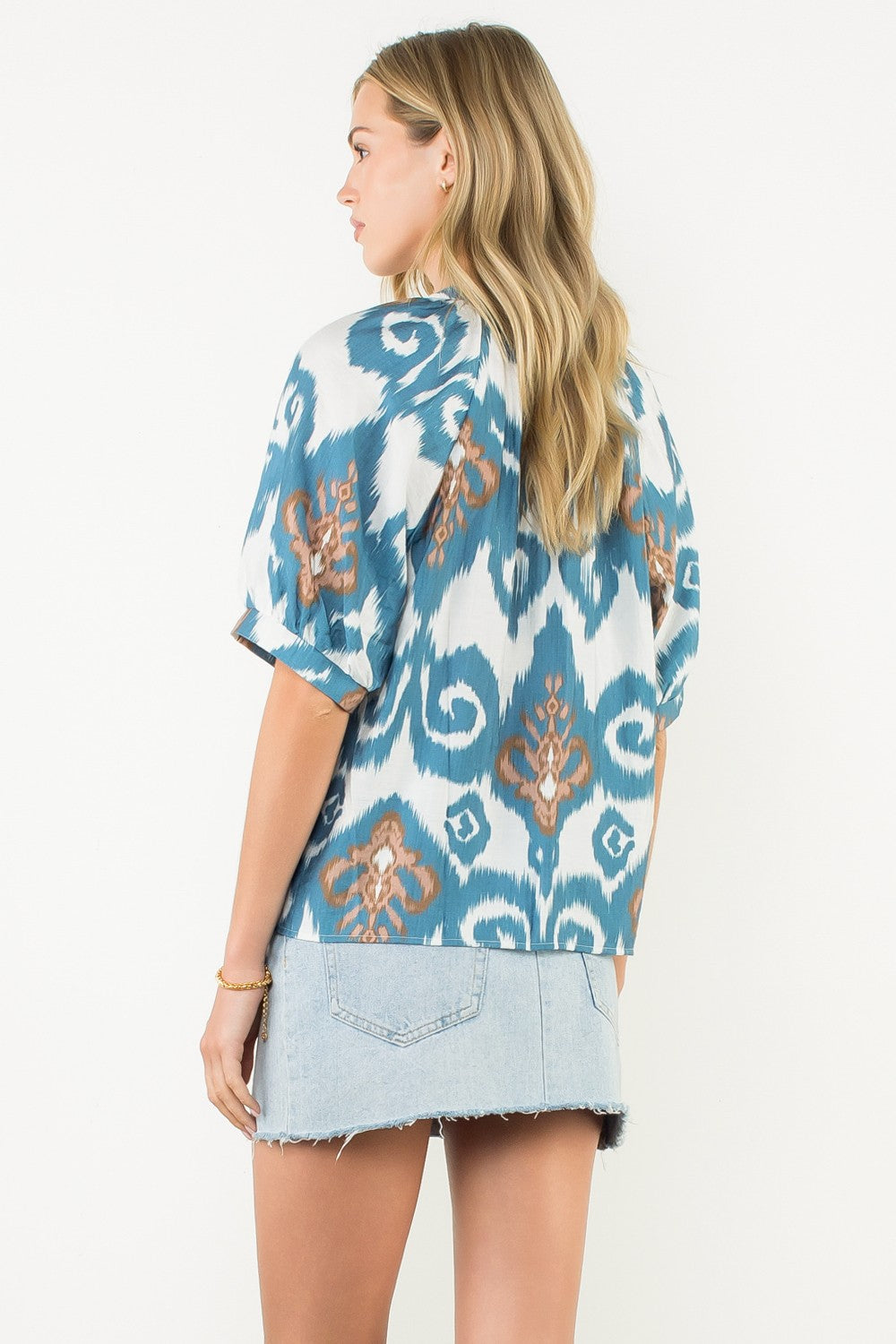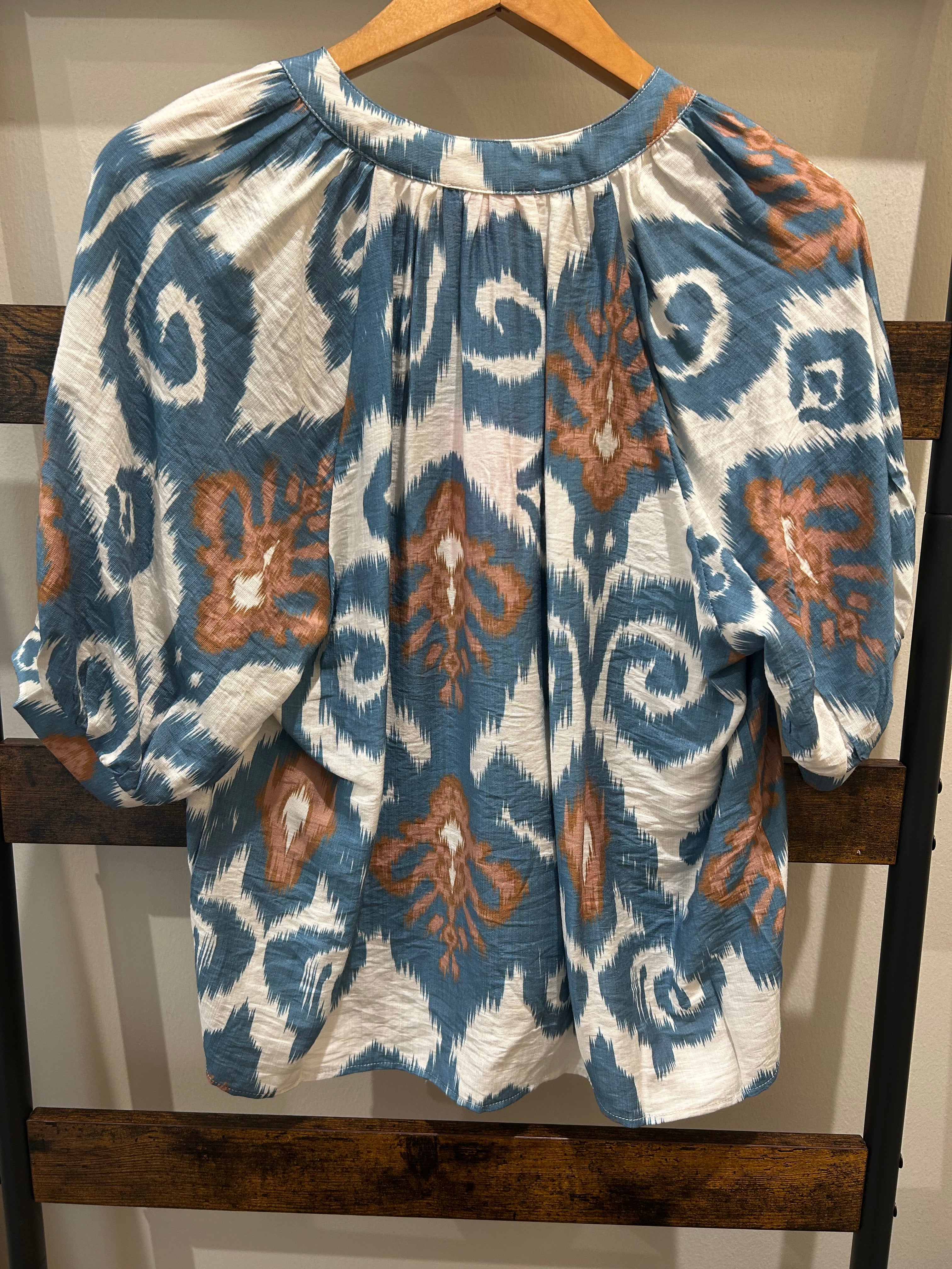 THML Short Sleeve Print V-Neck Top - Blue