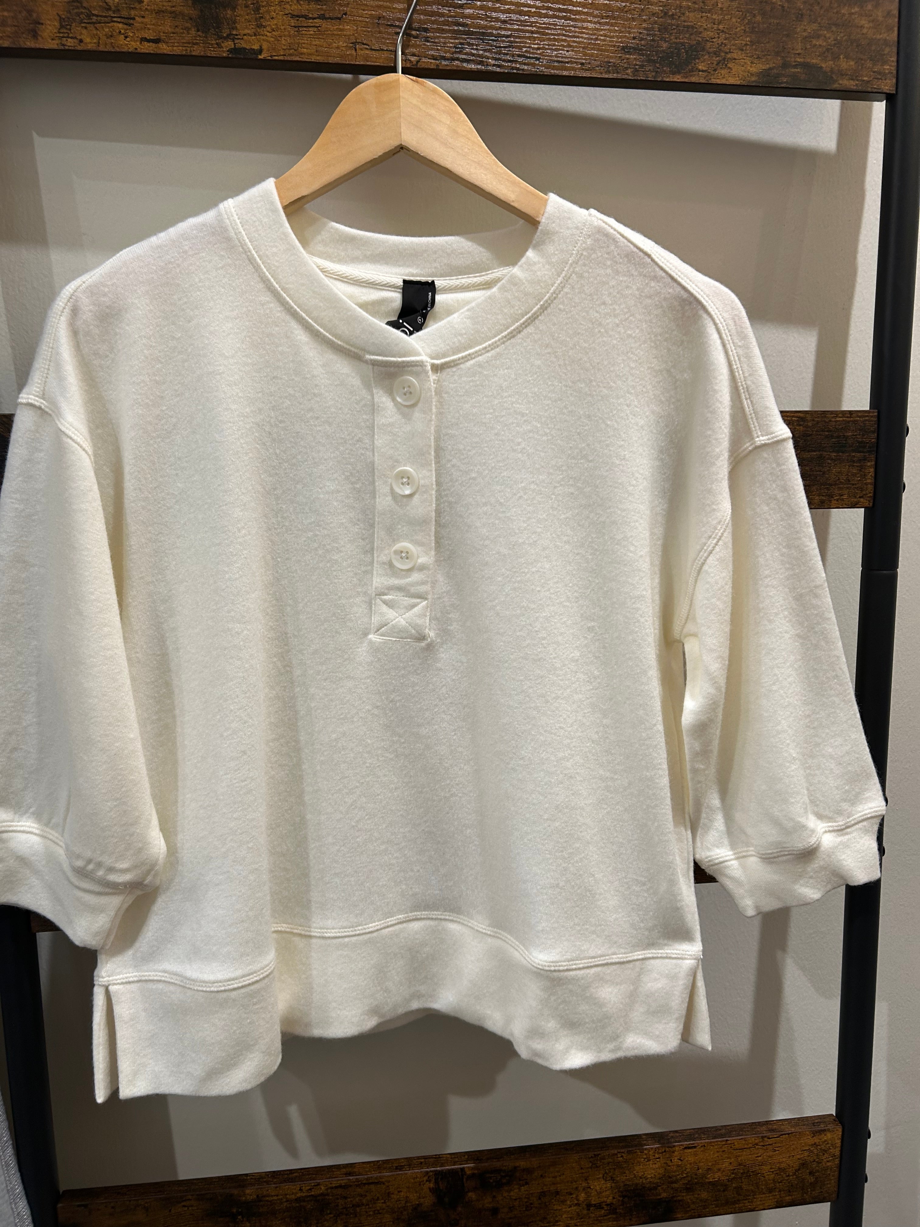 Puff Sleeve Boxy Henley - Cream