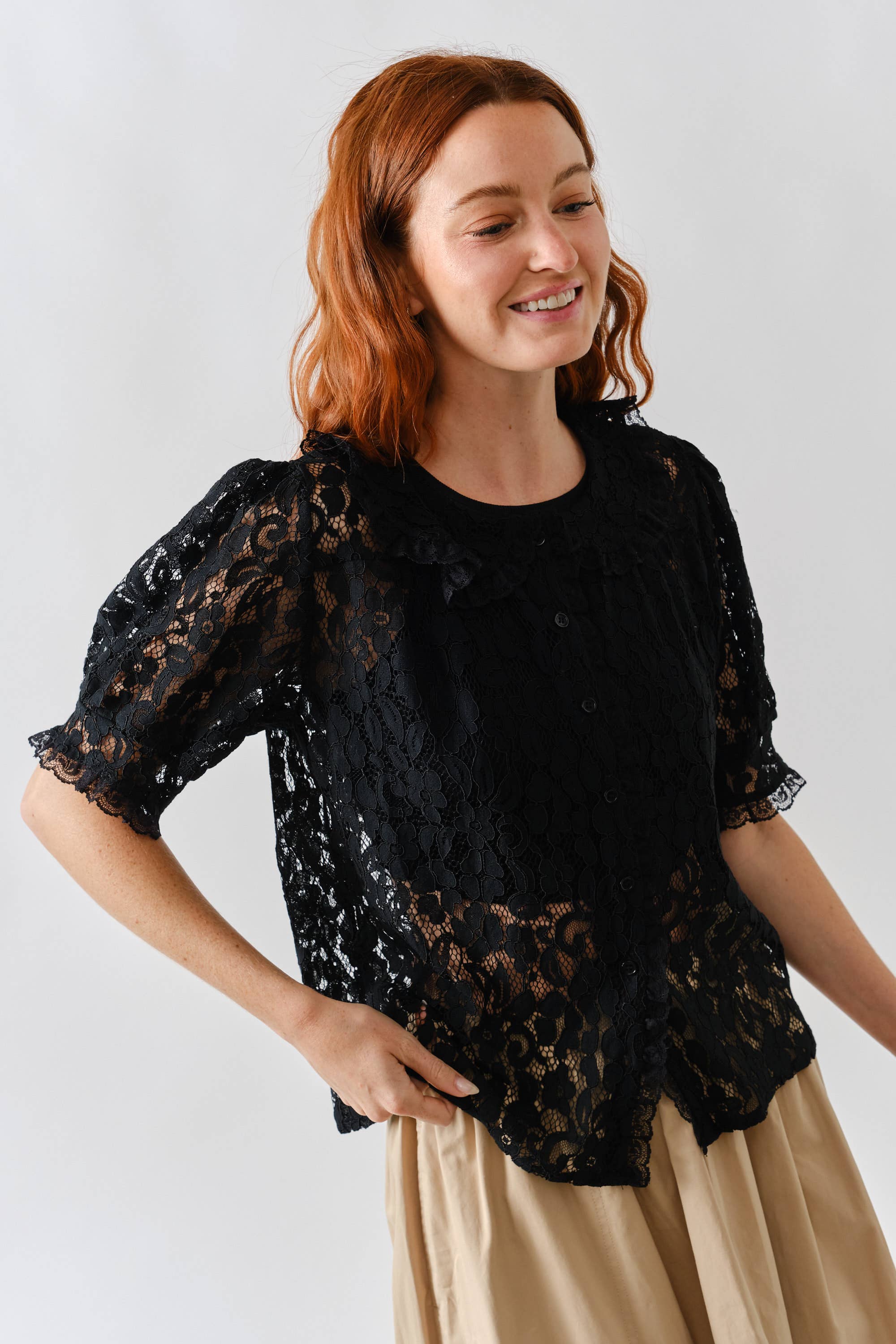Peter Pan Collar Lace Blouse - Black