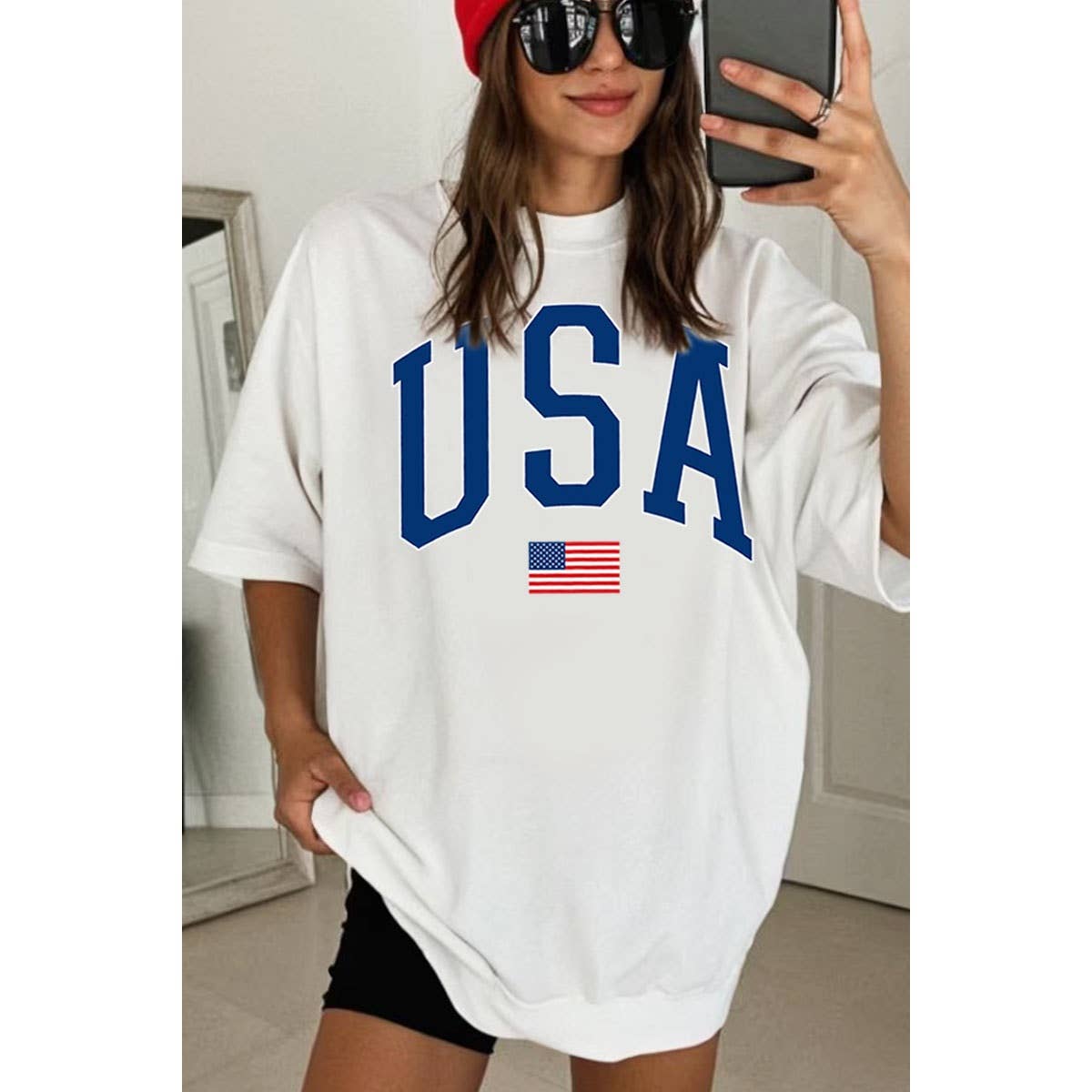 USA Flag Graphic Tee - White