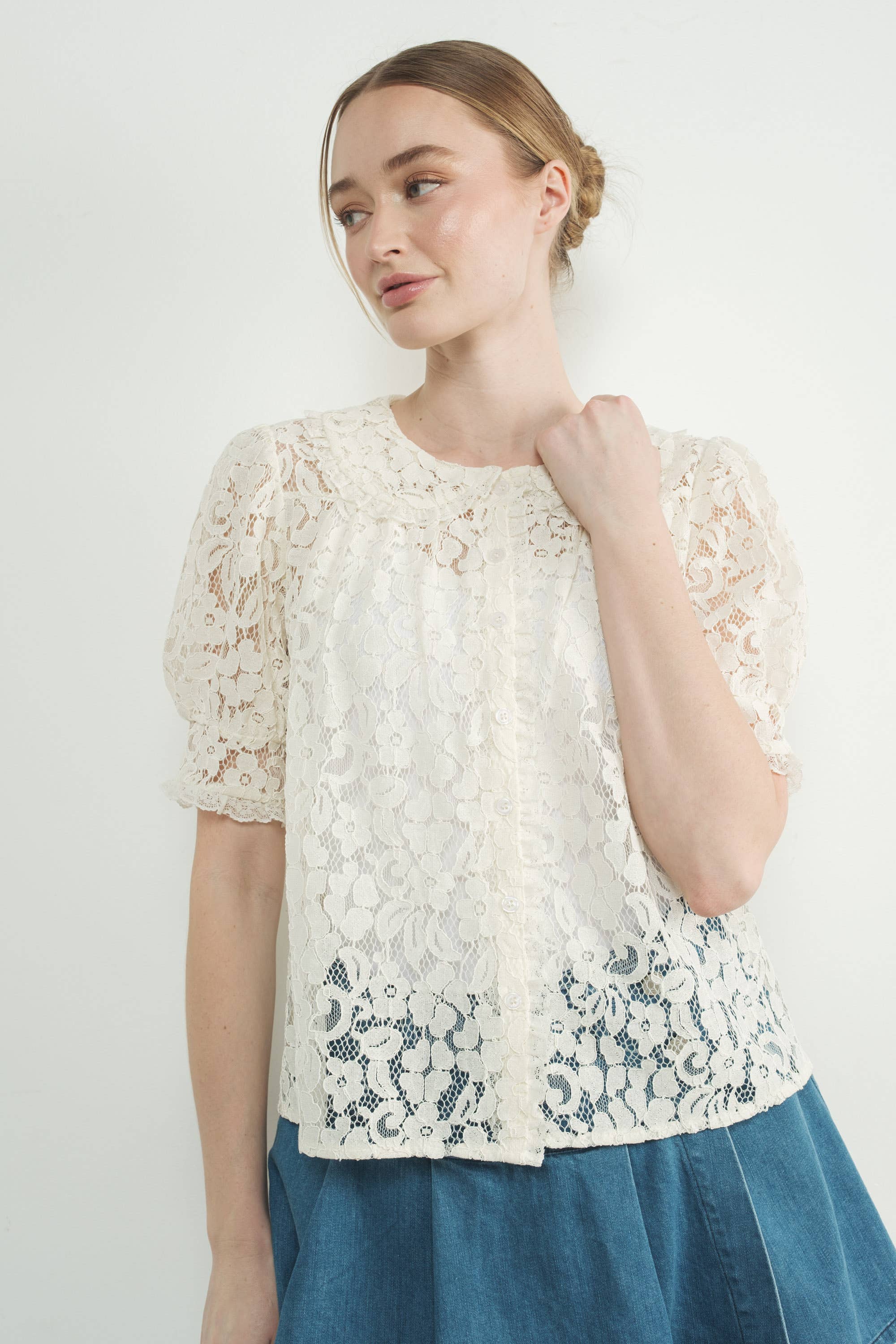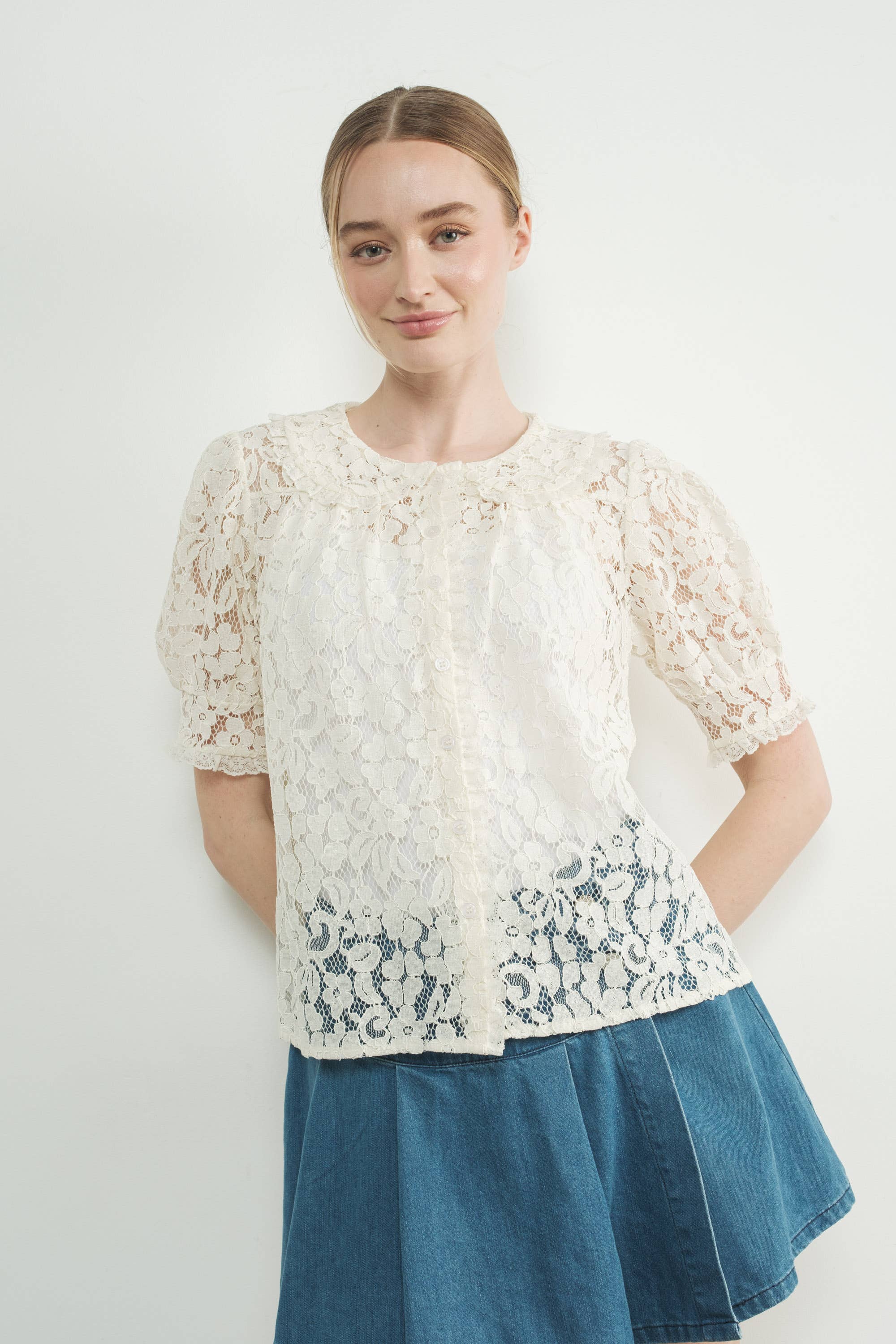 Peter Pan Collar Lace Blouse - Cream