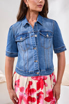 Tribal Comfort Stretch Elbow-Sleeve Denim Jacket - Harbor