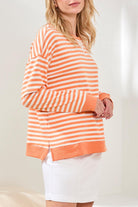 Stripes meet spirit in this vibrant long-sleeve crew neck that brings bold tribal energy to your everyday rotation. The mango hue pops against crisp striped detailing, creating a look that's equal parts laid-back and eye-catching. Perfect for layering or wearing solo, this piece adds personality to casual outfits without trying too hard. Comfortable enough for all-day wear, striking enough to turn heads.
