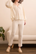 Elevate your wardrobe with the Tribal LS Blouse in Moonstone, featuring delicate flowly sleeves and a refined ruffle collar. This blouse combines subtle tribal-inspired details with elegant design, offering a sophisticated silhouette perfect for both day and evening wear. Its lightweight fabric ensures comfort while the ruffle collar adds a tasteful touch of femininity, making it an essential piece for a polished, confident look.