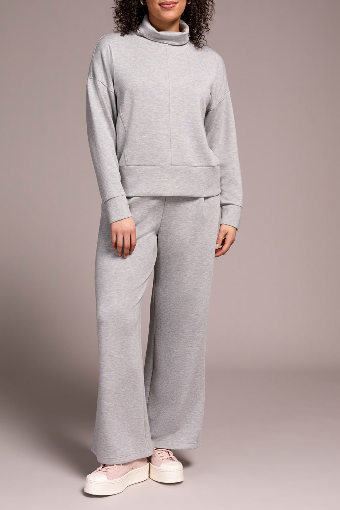 Tribal LS Funnel Neck Top - Lt. Grey Mix