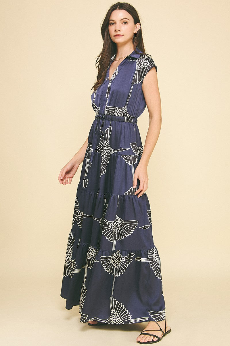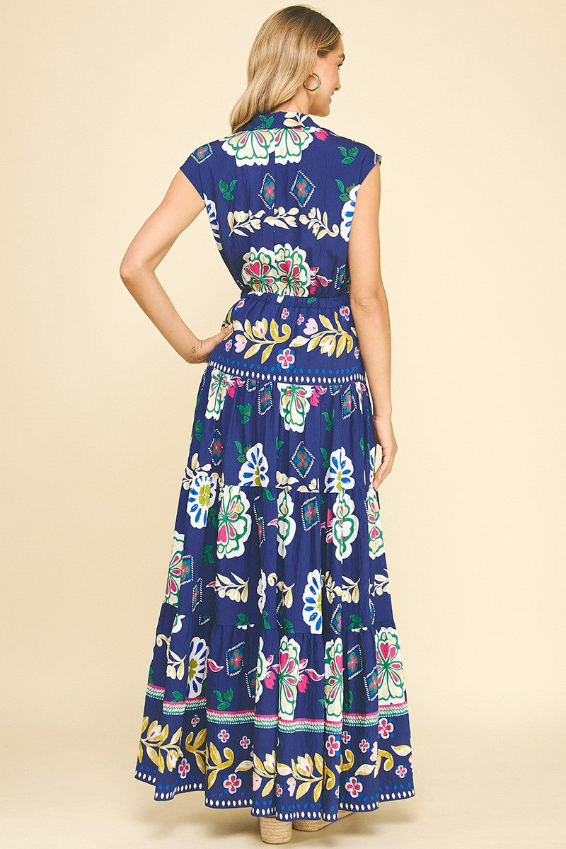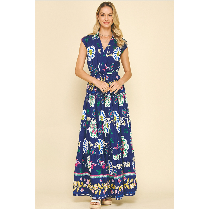Pinch Floral Tiered Maxi Dress -Deep Blue