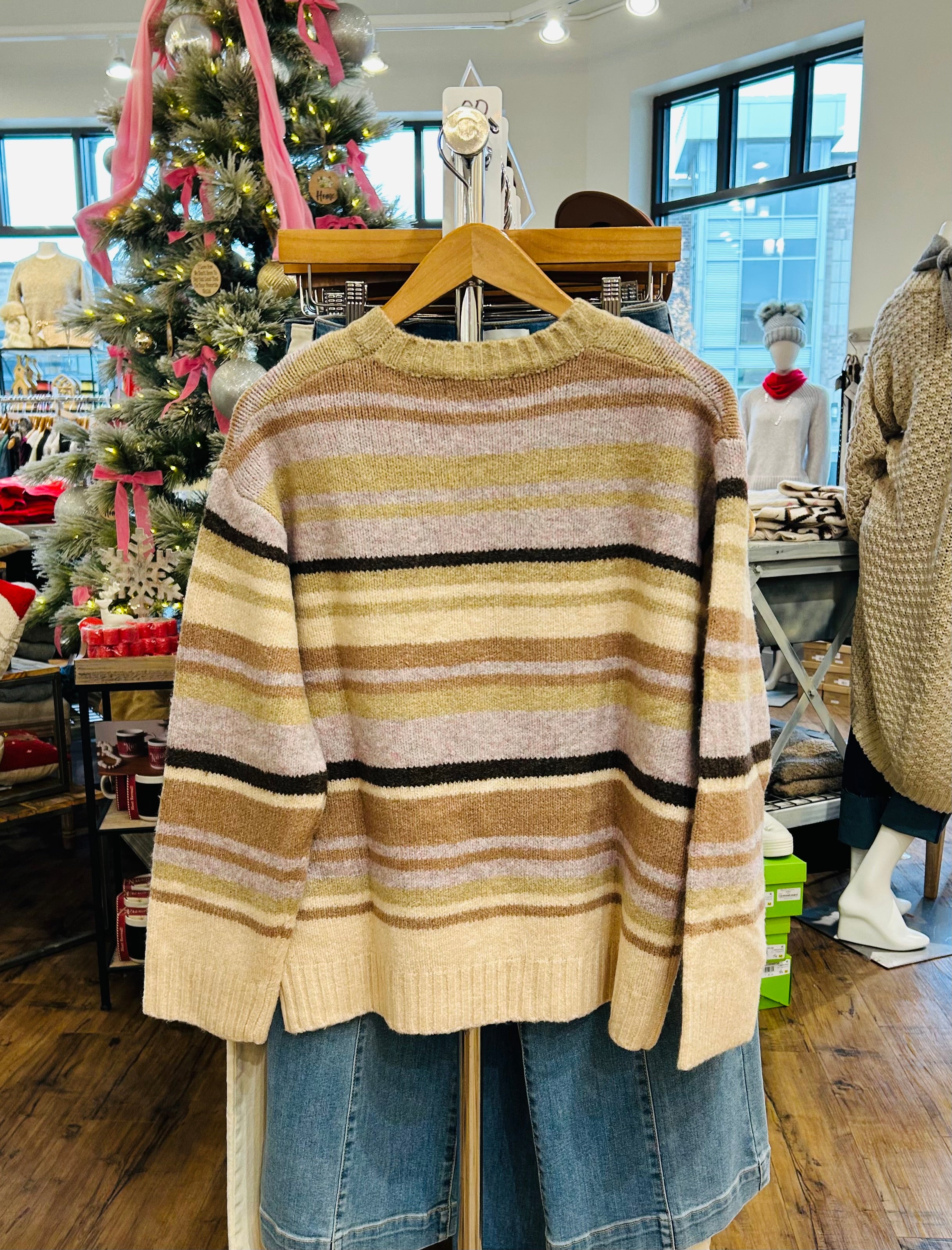 Pinch Multicolor Striped Knit Sweater - Taupe Multi