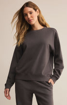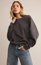Z SUPPLY Boyfriend Cotton Sweatshirt - Washed Black