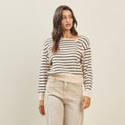 Able Asymmetric Neckline Striped Sweater - Cream/Black