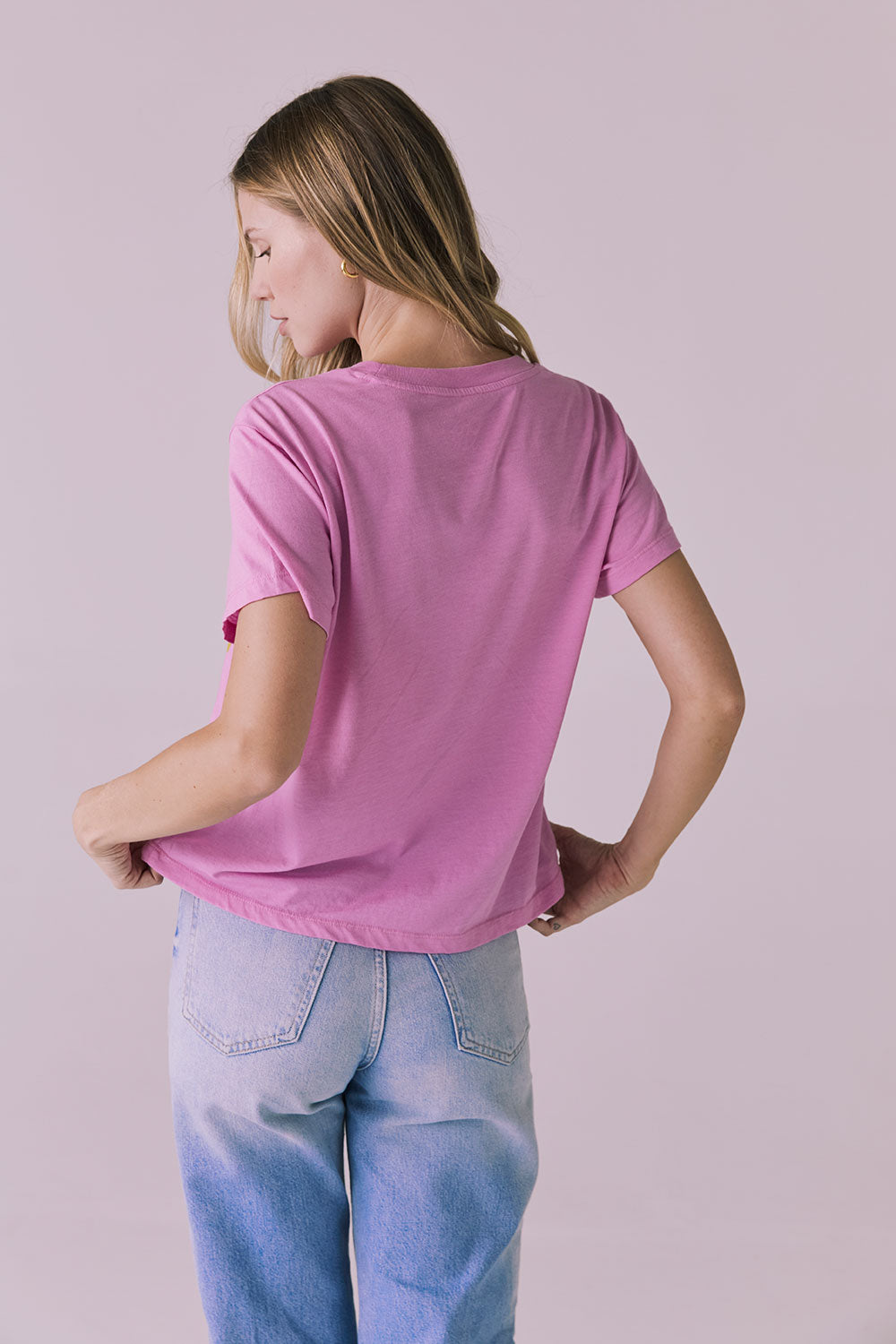 Featuring a playful gold bolt design on a bright bubblegum pink cotton blend backdrop, this 80s inspired tee exudes a sweet, fun vibe.
