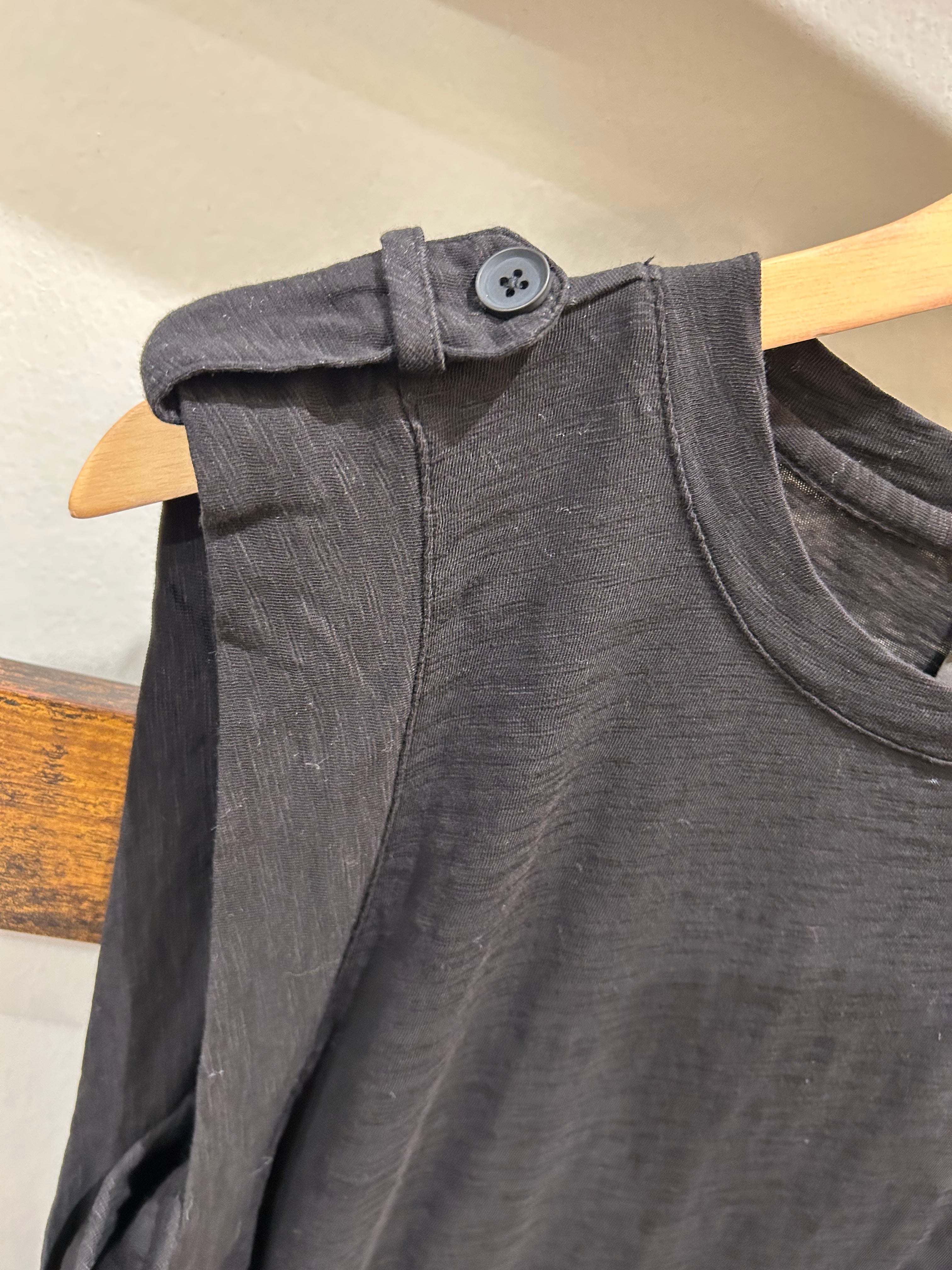 This black sleeveless tank features charming shoulder button details that add a playful twist to your everyday look. Perfect for layering or wearing solo, it brings effortless style and a touch of fun to any outfit.