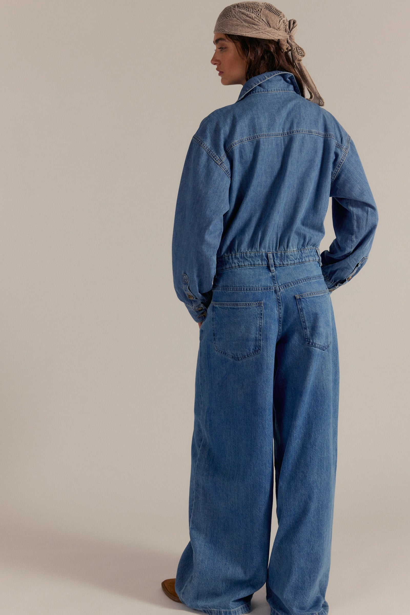 So effortless with an optical illusion finish, this one-piece features a soft, chambray-style top and rigid denim bottom for an effortless 2-in-1 look.