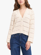 Easy to layer with its v-neckline, this open knit cardigan by ICHI features a subtly textured handle and is cut from a cotton blend for breathable wear.